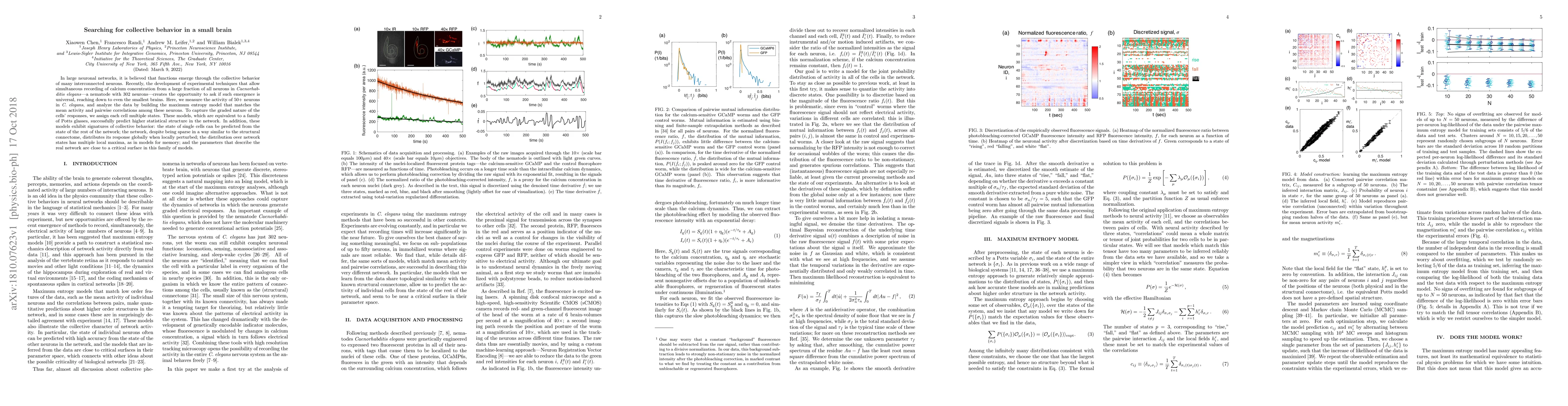This study investigates whether collective behavior, typically observed in large neuronal networks, can also emerge in the small brain of Caenorhabditis elegans. Using advanced calcium imaging techniques, the researchers analyze the activity of over 50 neurons and find evidence of higher statistical structure and signatures of collective behavior in the network.