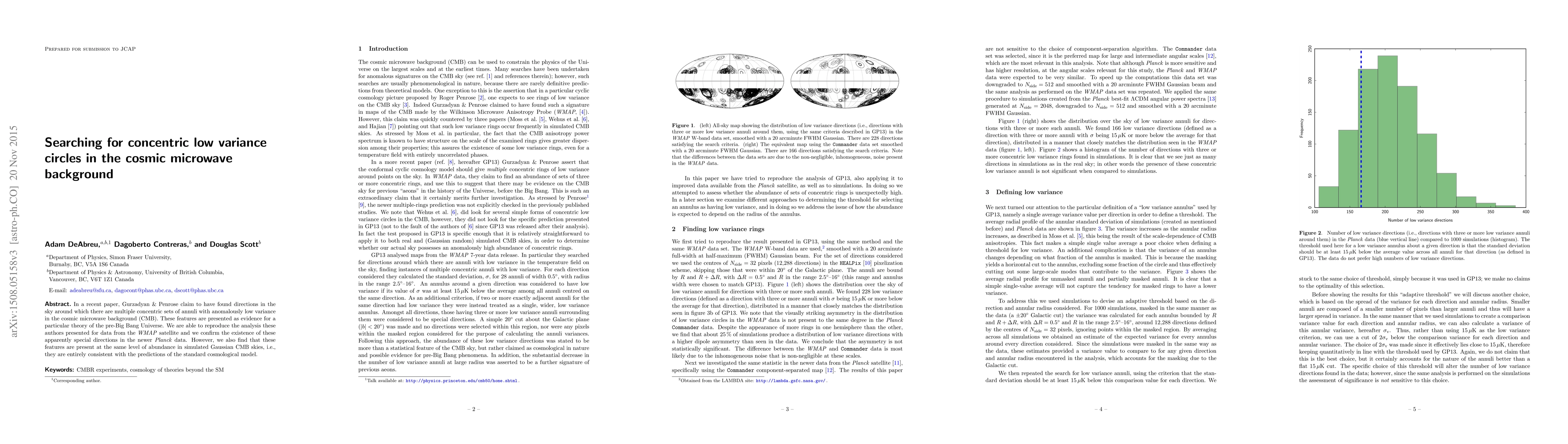 In a recent paper, Gurzadyan & Penrose claim to have found directions in the sky around which there are multiple concentric sets of annuli with anomalously low variance in the cosmic microwave background (CMB). These features are presented as evidence for a particular theory of the pre-Big Bang Universe. We are able to reproduce the analysis these authors presented for data from the WMAP satellite and we confirm the existence of these apparently special directions in the newer Planck data. However, we also find that these features are present at the same level of abundance in simulated Gaussian CMB skies, i.e. they are entirely consistent with the predictions of the standard cosmological model.