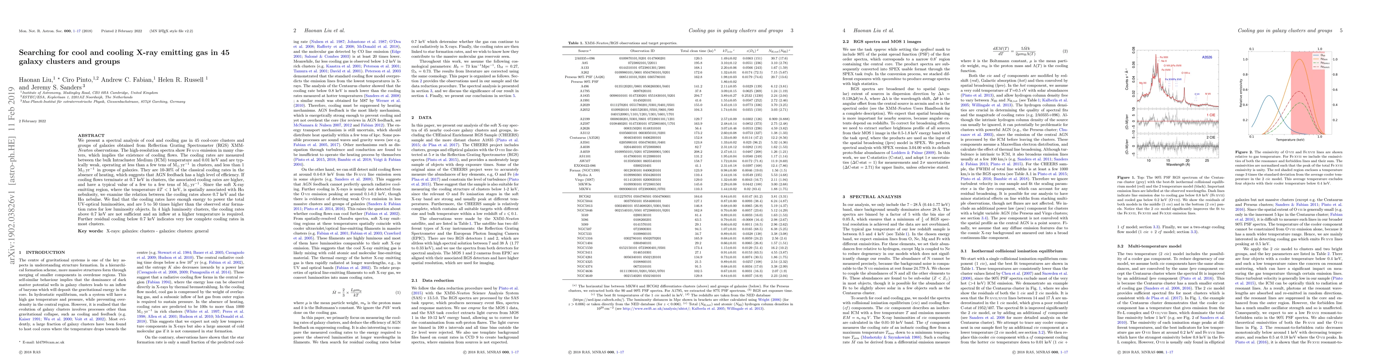 We present a spectral analysis of cool and cooling gas in 45 cool-core clusters and groups of galaxies obtained from Reflection Grating Spectrometer (RGS) XMM-$Newton$ observations. The high-resolution spectra show FeXVII emission in many clusters, which implies the existence of cooling flows. The cooling rates are measured between the bulk Intracluster Medium (ICM) temperature and 0.01 keV and are typically weak, operating at less than a few tens of $\rm M_{\odot}\rm yr^{-1}$ in clusters, and less than 1 $\rm M_{\odot}\rm yr^{-1}$ in groups of galaxies. They are 10-30% of the classical cooling rates in the absence of heating, which suggests that AGN feedback has a high level of efficiency. If cooling flows terminate at 0.7 keV in clusters, the associated cooling rates are higher, and have a typical value of a few to a few tens of $\rm M_{\odot}\rm yr^{-1}$. Since the soft X-ray emitting region, where the temperature $kT<1$ keV, is spatially associated with H$\alpha$ nebulosity, we examine the relation between the cooling rates above 0.7 keV and the H$\alpha$ nebulae. We find that the cooling rates have enough energy to power the total UV-optical luminosities, and are 5 to 50 times higher than the observed star formation rates for low luminosity objects. In 4 high luminosity clusters, the cooling rates above 0.7 keV are not sufficient and an inflow at a higher temperature is required. Further residual cooling below 0.7 keV indicates very low complete cooling rates in most clusters.