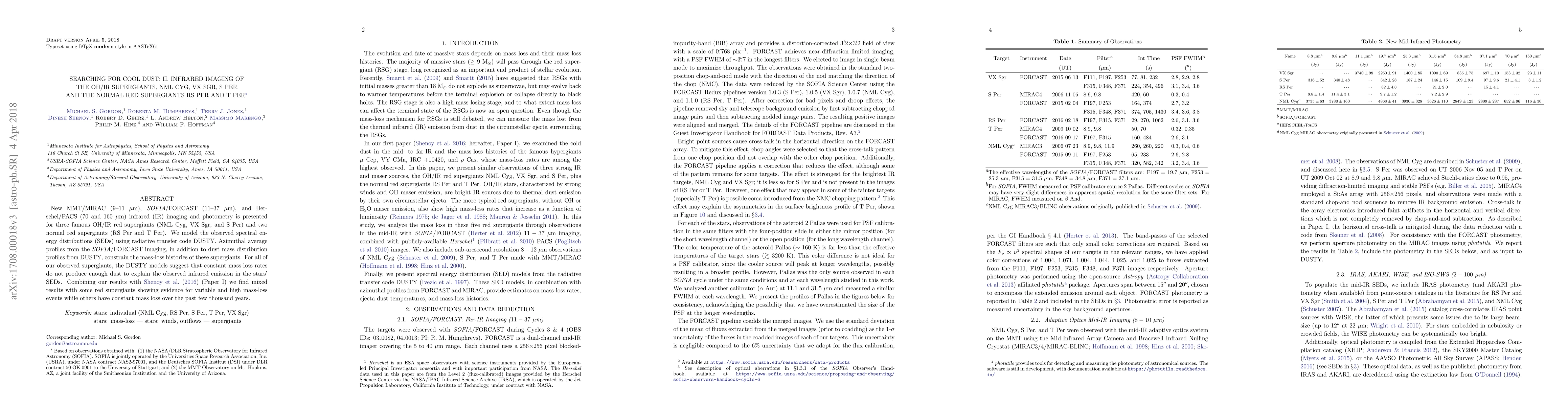 New MMT/MIRAC (9-11 {\mu}m), SOFIA/FORCAST (11-37 {\mu}m), and Herschel/PACS (70 and 160 {\mu}m) infrared (IR) imaging and photometry is presented for three famous OH/IR red supergiants (NML Cyg, VX Sgr, and S Per) and two normal red supergiants (RS Per and T Per). We model the observed spectral energy distributions (SEDs) using radiative transfer code DUSTY. Azimuthal average profiles from the SOFIA/FORCAST imaging, in addition to dust mass distribution profiles from DUSTY, constrain the mass-loss histories of these supergiants. For all of our observed supergiants, the DUSTY models suggest that constant mass-loss rates do not produce enough dust to explain the observed infrared emission in the stars' SEDs. Combining our results with Shenoy et al. (2016) (Paper I) we find mixed results with some red supergiants showing evidence for variable and high mass-loss events while others have constant mass loss over the past few thousand years.