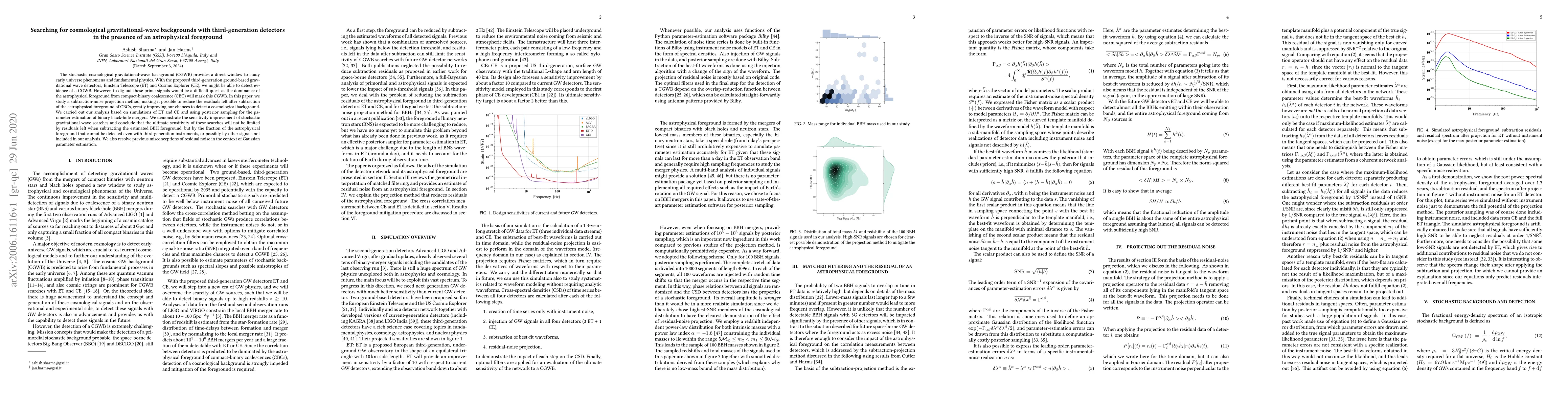 This paper investigates methods to detect the cosmological gravitational-wave background (CGWB) using third-generation detectors like ET and CE, despite the masking effect of astrophysical foregrounds from compact-binary coalescences (CBCs). The authors propose a subtraction-noise projection method to reduce residual noise, significantly enhancing detection prospects.