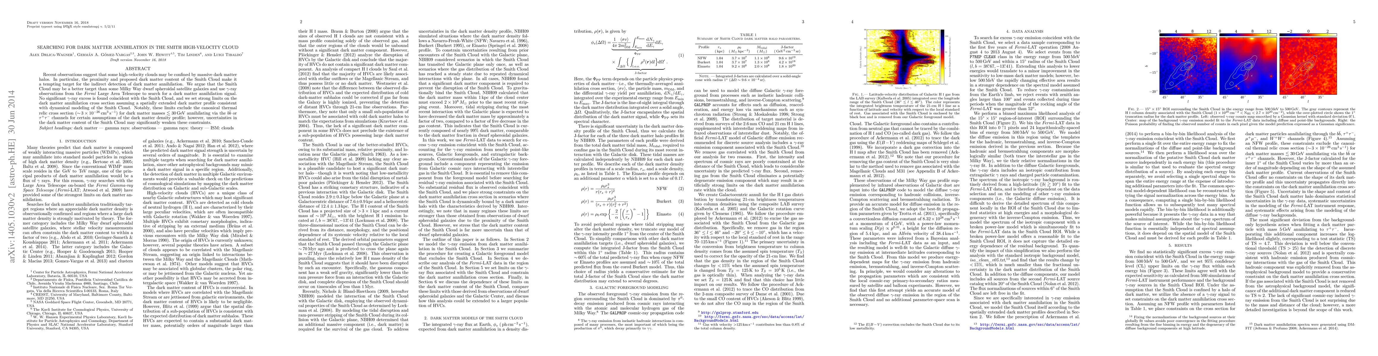 This paper investigates the Smith High-Velocity Cloud for potential dark matter annihilation signals using Fermi Large Area Telescope data. No significant gamma-ray excess was detected, leading to strong limits on the dark matter annihilation cross section, but uncertainties in the cloud's dark matter content may weaken these constraints.
