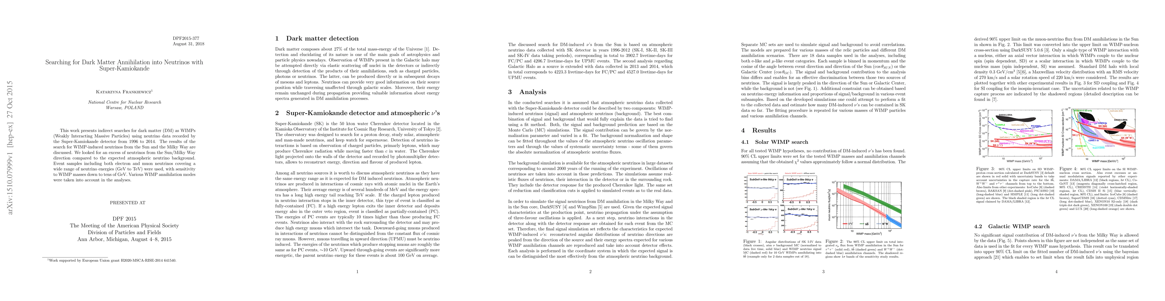 Researchers used Super-Kamiokande data to search for dark matter annihilation into neutrinos from 1996 to 2014, finding no evidence of WIMP-induced neutrino signals.