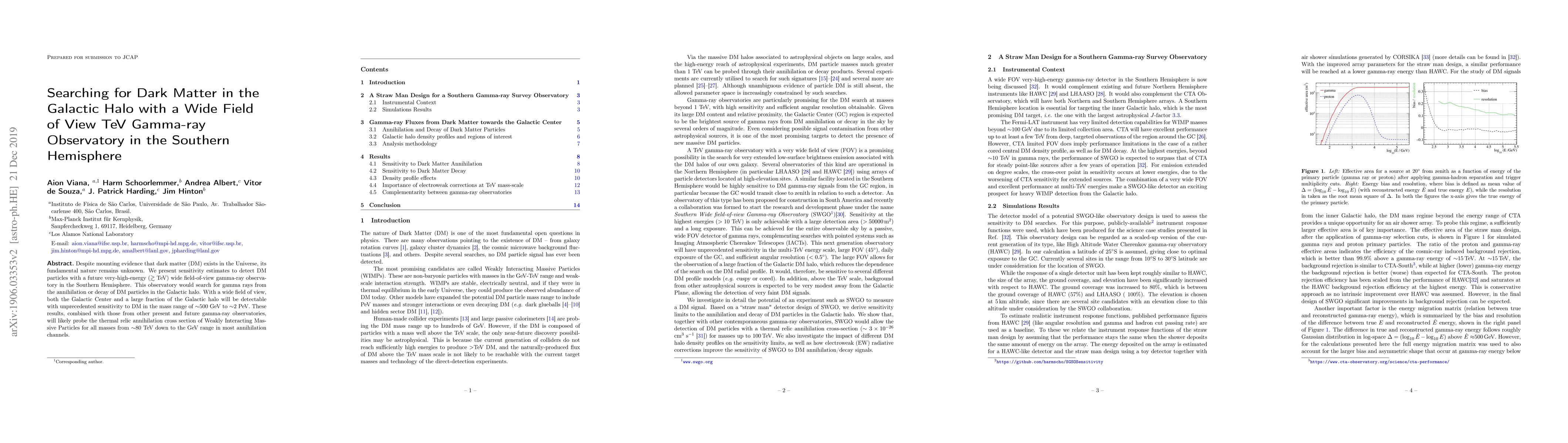 This paper explores the potential of a future very-high-energy gamma-ray observatory in the Southern Hemisphere to detect dark matter particles through their annihilation or decay in the Galactic halo. The proposed observatory's wide field of view promises unprecedented sensitivity to dark matter in the mass range of 500 GeV to 2 PeV.