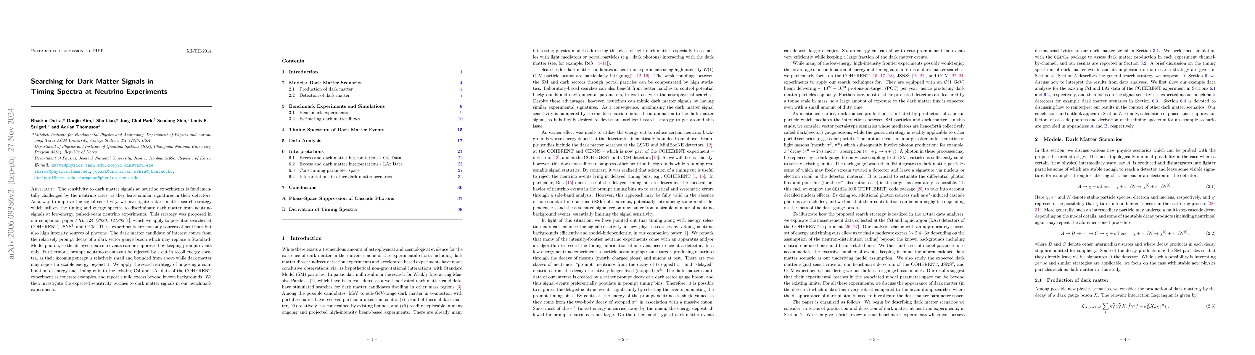 Researchers propose a new strategy to detect dark matter at low-energy neutrino experiments by combining timing and energy spectra, reporting a mild excess beyond known backgrounds in initial results.