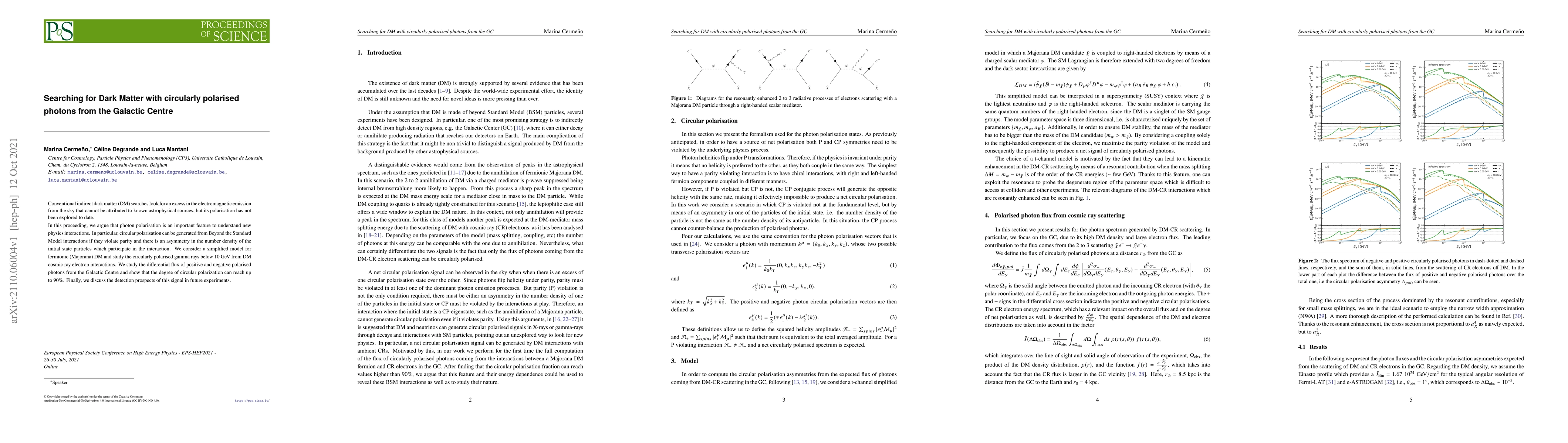 This paper proposes exploring circularly polarized photons from the Galactic Centre as a novel method for indirect dark matter searches. It suggests that such polarization, potentially reaching 90%, could signal new physics interactions violating parity, and discusses detection prospects for future experiments.