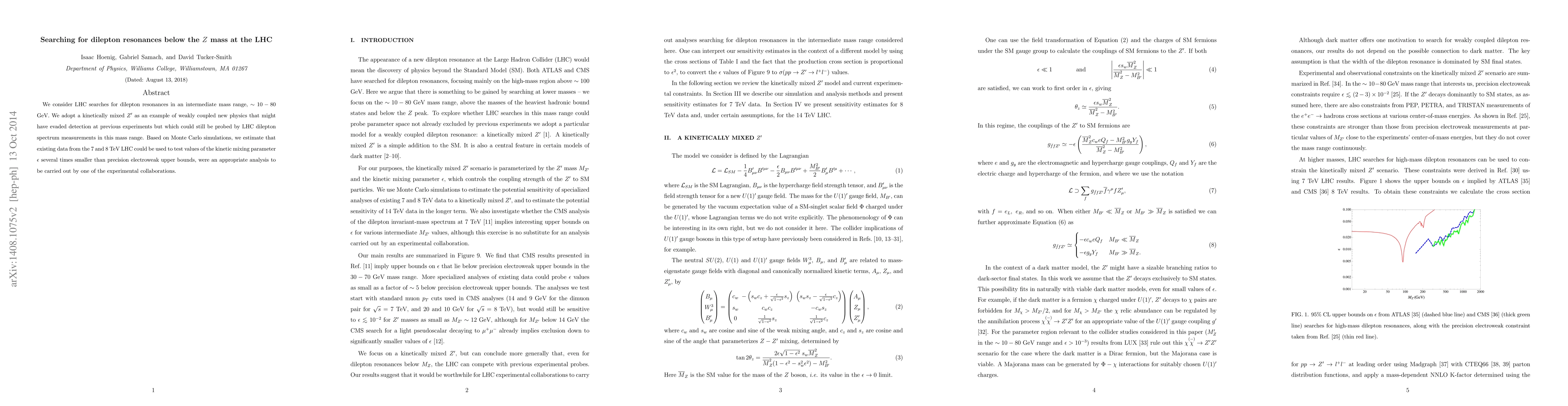 This research explores LHC searches for dilepton resonances within 10-80 GeV, using a hypothetical kinetically mixed Z' as a case study. Monte Carlo simulations suggest that existing 7 and 8 TeV LHC data could test kinetic mixing parameter values much smaller than current electroweak bounds, if an appropriate analysis is performed by an experimental collaboration.