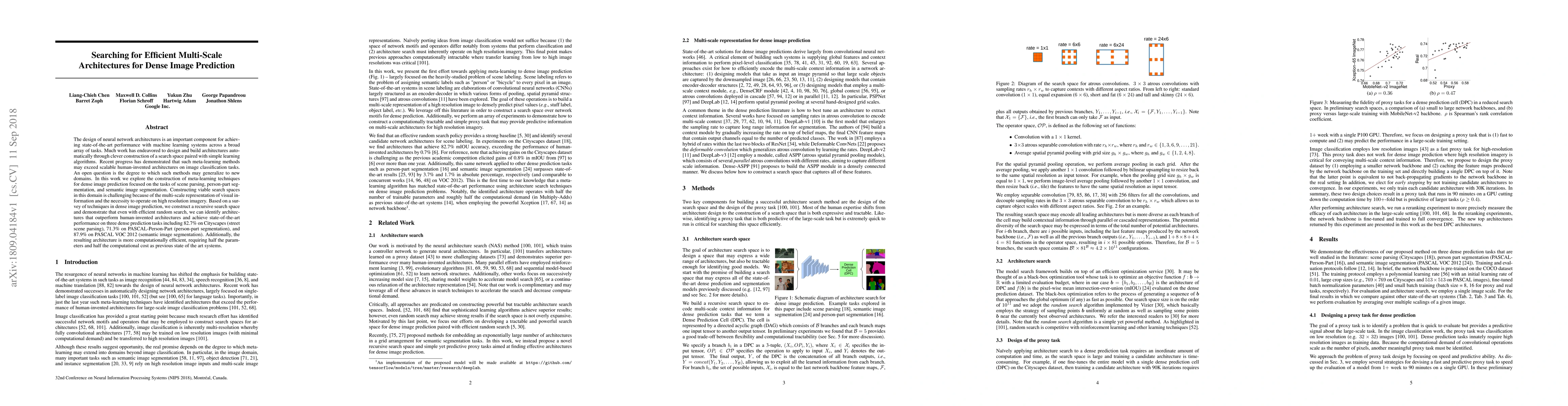 This paper explores meta-learning techniques to design efficient multi-scale neural network architectures for dense image prediction tasks, achieving state-of-the-art performance on scene parsing, person-part segmentation, and semantic image segmentation while being computationally efficient. The study demonstrates the effectiveness of recursive search spaces in identifying superior architectures.