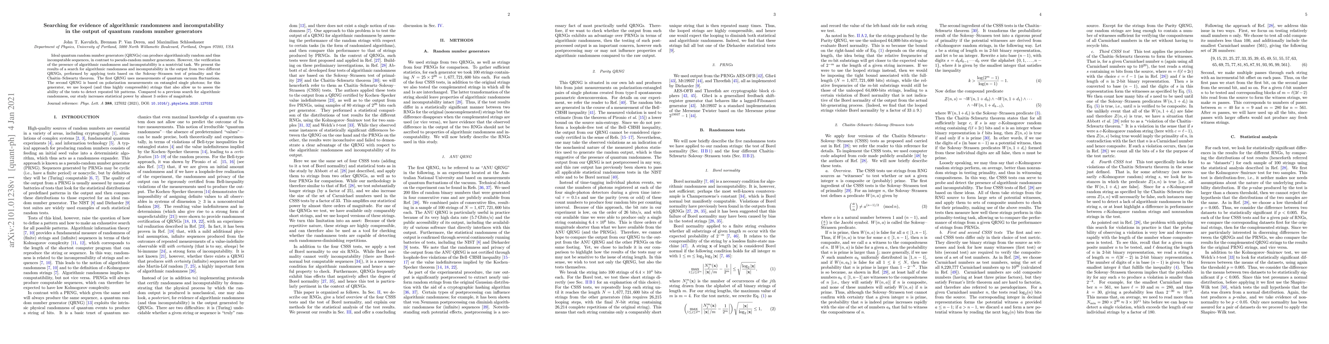 This paper investigates the presence of algorithmic randomness and incomputability in outputs from two quantum random number generators (QRNGs) using advanced tests. The study significantly enhances statistical power and finds evidence supporting the generators' production of true random sequences.