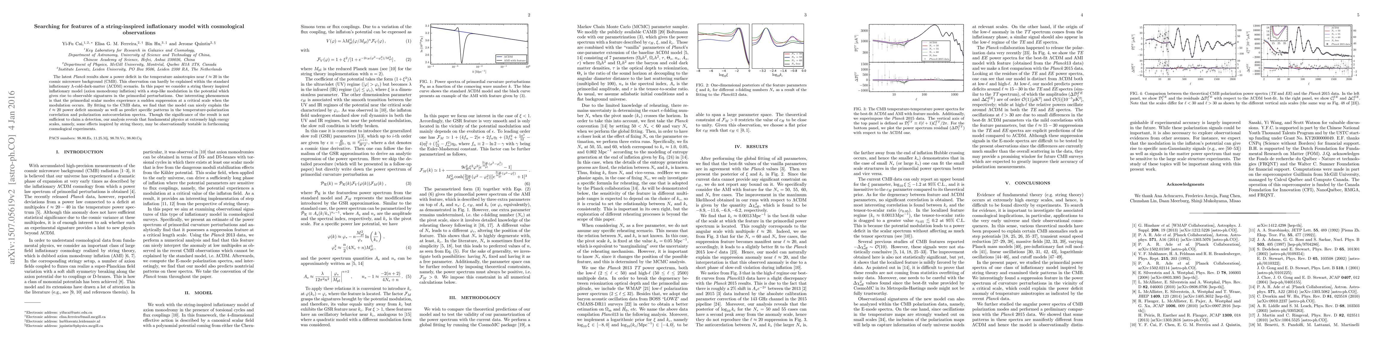 The latest Planck results show a power deficit in the temperature anisotropies near $\ell \approx 20$ in the cosmic microwave background (CMB). This observation can hardly be explained within the standard inflationary $\Lambda$-cold-dark-matter ($\Lambda$CDM) scenario. In this paper we consider a string theory inspired inflationary model (axion monodromy inflation) with a step-like modulation in the potential which gives rise to observable signatures in the primordial perturbations. One interesting phenomenon is that the primordial scalar modes experience a sudden suppression at a critical scale when the modulation occurs. By fitting to the CMB data, we find that the model can nicely explain the $\ell \approx 20$ power deficit anomaly as well as predict specific patterns in the temperature-polarization correlation and polarization autocorrelation spectra. Though the significance of the result is not sufficient to claim a detection, our analysis reveals that fundamental physics at extremely high energy scales, namely, some effects inspired by string theory, may be observationally testable in forthcoming cosmological experiments.