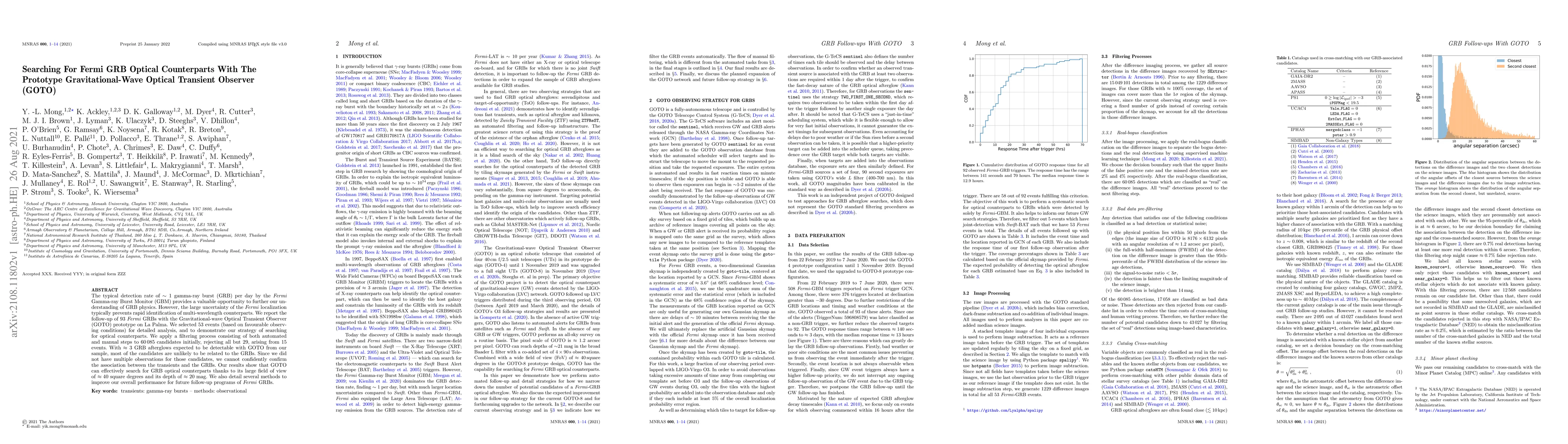 Researchers used GOTO to search for optical counterparts of 93 Fermi GRBs, finding only 29 candidates from 15 events, demonstrating its ability to detect GRB afterglows with a large field of view.