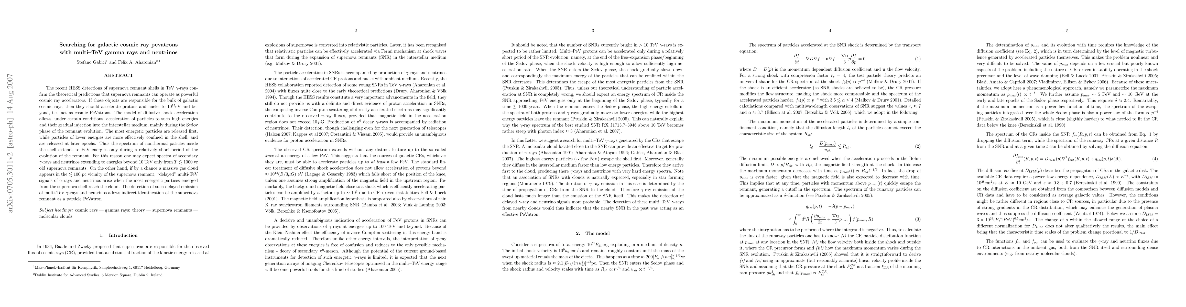 This paper explores the potential of supernova remnants as galactic cosmic ray PeVatrons by analyzing multi-TeV gamma-ray and neutrino signals, confirming that these remnants can accelerate particles to PeV energies, with delayed signals indicating PeVatron activity.