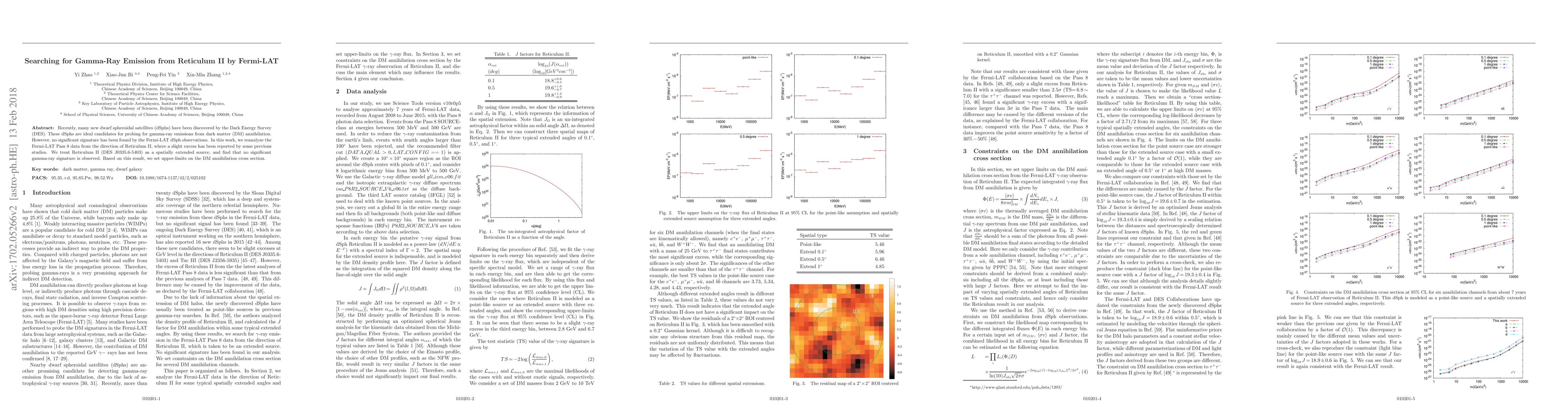 Recently, many new dwarf spheroidal satellites (dSphs) have been discovered by the Dark Energy Survey (DES). These dSphs are ideal candidates for probing for gamma-ray emissions from dark matter (DM) annihilation. However, no significant signature has been found by the Fermi-LAT dSph observations. In this work, we reanalyze the Fermi-LAT Pass 8 data from the direction of Reticulum II, where a slight excess has been reported by some previous studies. We treat Reticulum II (DES J0335.6-5403) as a spatially extended source, and and that no significant gamma-ray signature is observed. Based on this result, we set upper-limits on the DM annihilation cross section.