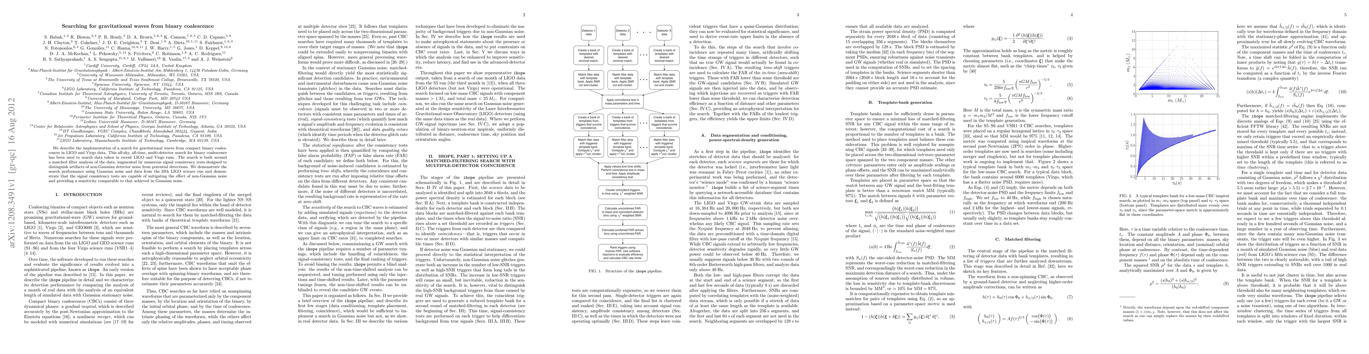 We describe the implementation of a search for gravitational waves from compact binary coalescences in LIGO and Virgo data. This all-sky, all-time, multi-detector search for binary coalescence has been used to search data taken in recent LIGO and Virgo runs. The search is built around a matched filter analysis of the data, augmented by numerous signal consistency tests designed to distinguish artifacts of non-Gaussian detector noise from potential detections. We demonstrate the search performance using Gaussian noise and data from the fifth LIGO science run and demonstrate that the signal consistency tests are capable of mitigating the effect of non-Gaussian noise and providing a sensitivity comparable to that achieved in Gaussian noise.