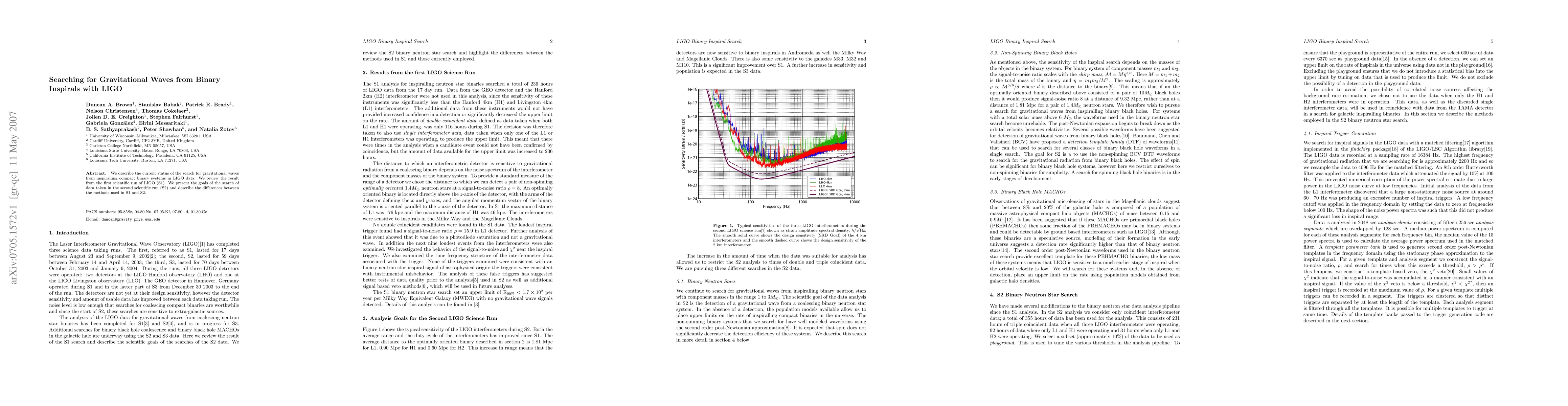 This paper reviews the initial search results for gravitational waves from binary inspirals during LIGO's first scientific run (S1) and outlines the objectives and methodological differences for the second scientific run (S2). It highlights advancements in detection techniques between the two runs.