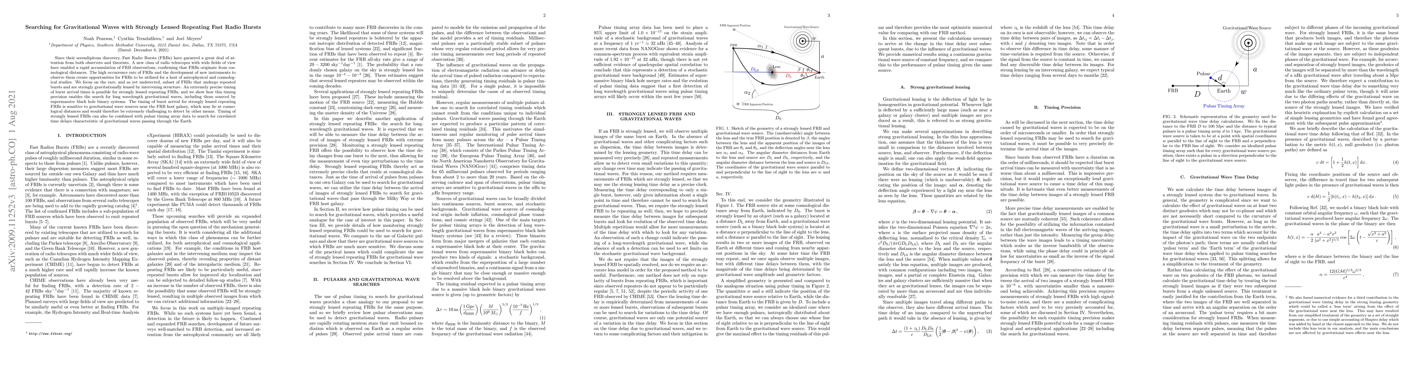 This paper explores the potential of using strongly lensed, repeating Fast Radio Bursts (FRBs) to detect long wavelength gravitational waves, particularly those from supermassive black hole binary systems. The precise timing of these bursts can reveal gravitational wave sources near the FRB host galaxy, offering a unique detection method for phenomena otherwise difficult to observe.