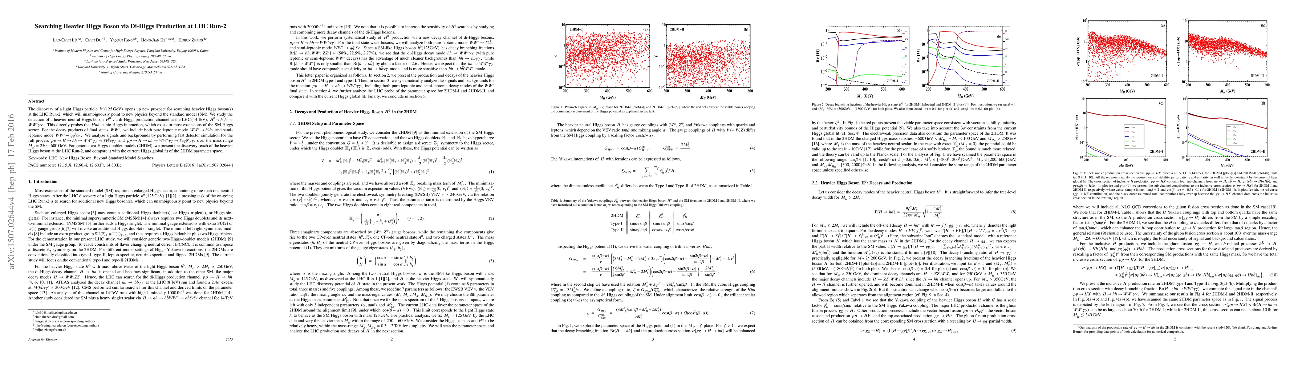 This paper investigates the potential for discovering a heavier Higgs boson $H^0$ via di-Higgs production at the LHC Run-2, focusing on the decay channel $H^0 \to h^0h^0 \to WW^*\gamma\gamma$ to probe the $Hhh$ cubic Higgs interaction. The study analyzes both leptonic and semi-leptonic decay modes of $WW^*$, and presents the discovery reach for $H^0$ masses ranging from 250 to 600 GeV.
