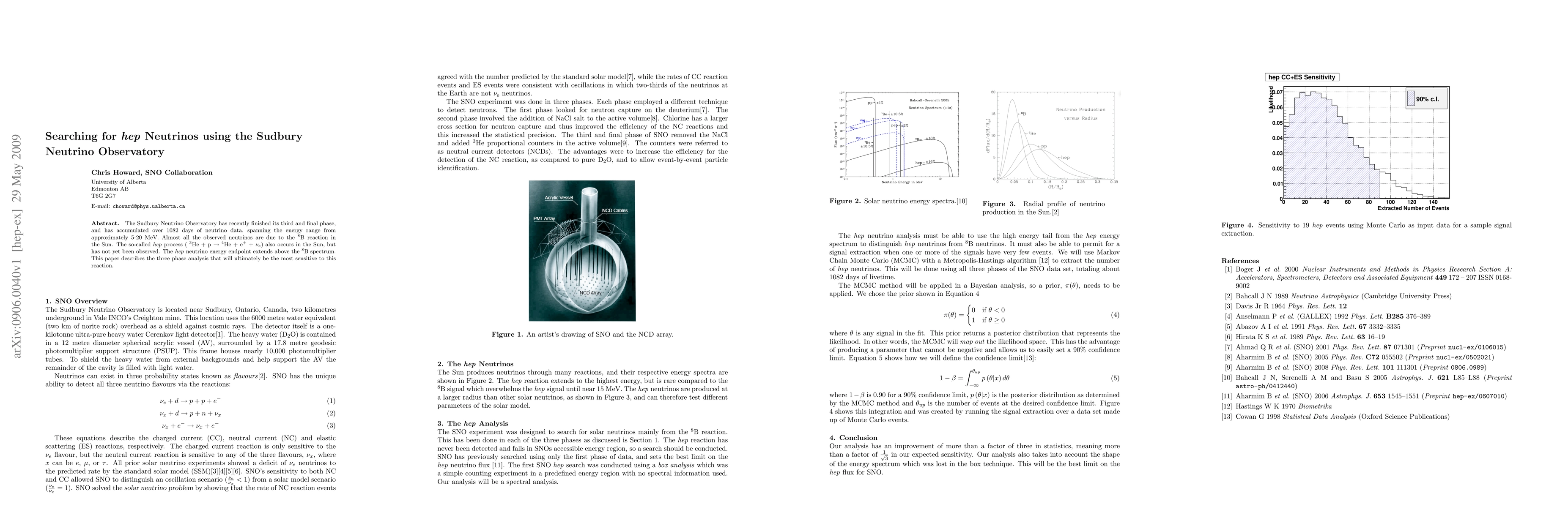 The Sudbury Neutrino Observatory has recently finished its third and final phase, and has accumulated over 1082 days of neutrino data, spanning the energy range from approximately 5-20 MeV. Almost all the observed neutrinos are due to the 8B reaction in the Sun. The so-called hep process (3He + p -> 4He + e + nu_e) also occurs in the Sun, but has not yet been observed. hep neutrino energy endpoint extends above the 8B spectrum. This paper describes the three phase analysis that will ultimately be the most sensitive to this reaction.