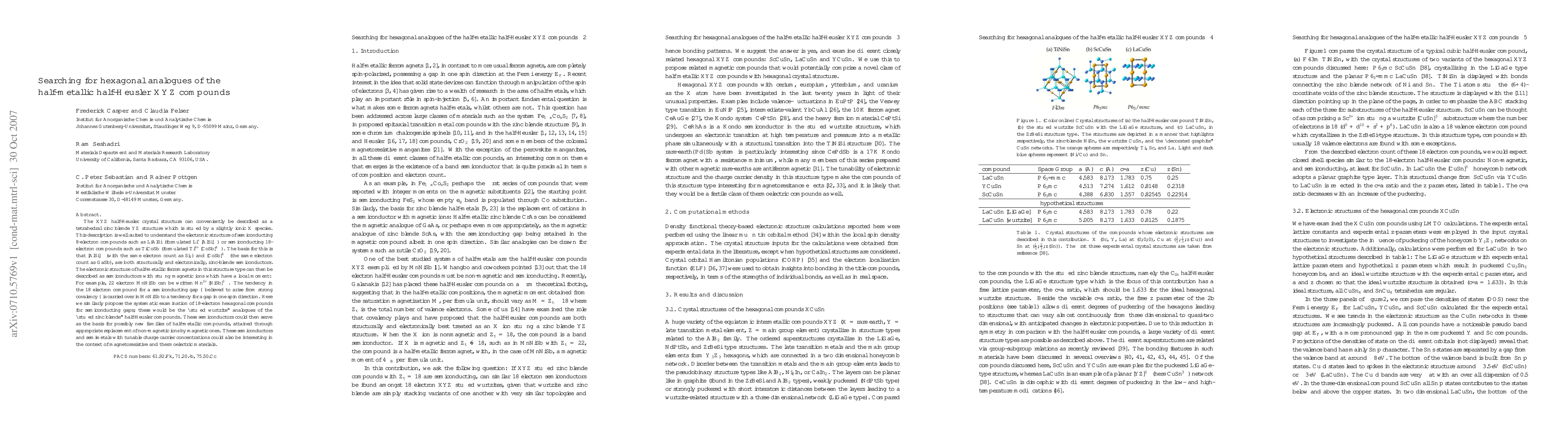 This paper explores the potential for hexagonal analogues of half-metallic half-Heusler compounds, proposing the examination of 18-electron hexagonal semiconductors as "stuffed wurtzite" analogues to the "stuffed zinc blende" half-Heusler compounds. These materials could potentially lead to new families of half-metallic compounds with applications in magnetoresistive and thermoelectric technologies.
