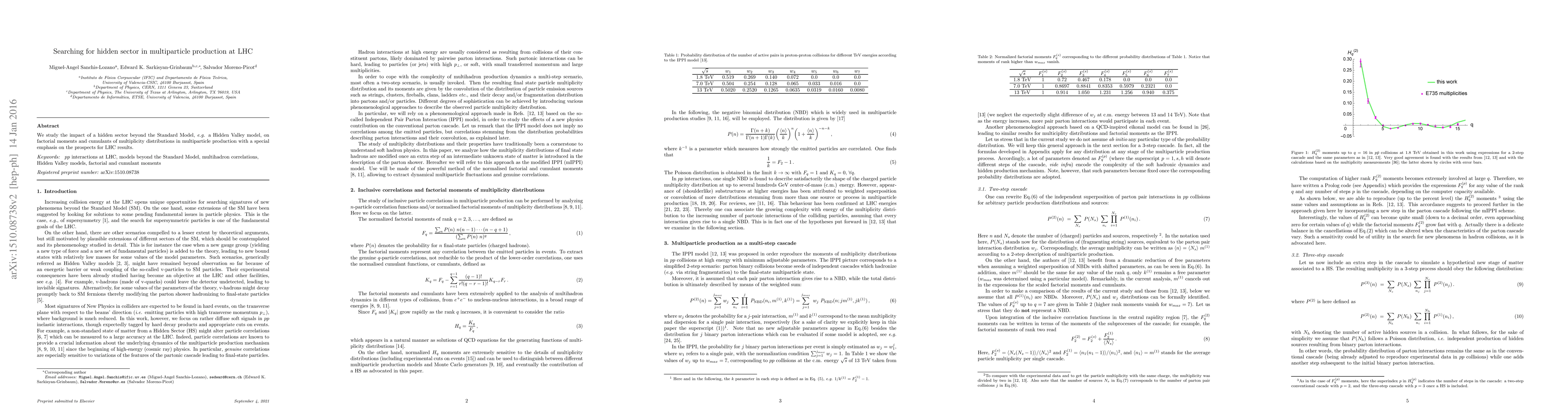 This paper investigates the influence of a hidden sector, such as a Hidden Valley model, on the factorial moments and cumulants of particle multiplicity distributions in multiparticle production at the LHC, focusing on potential LHC detection prospects.