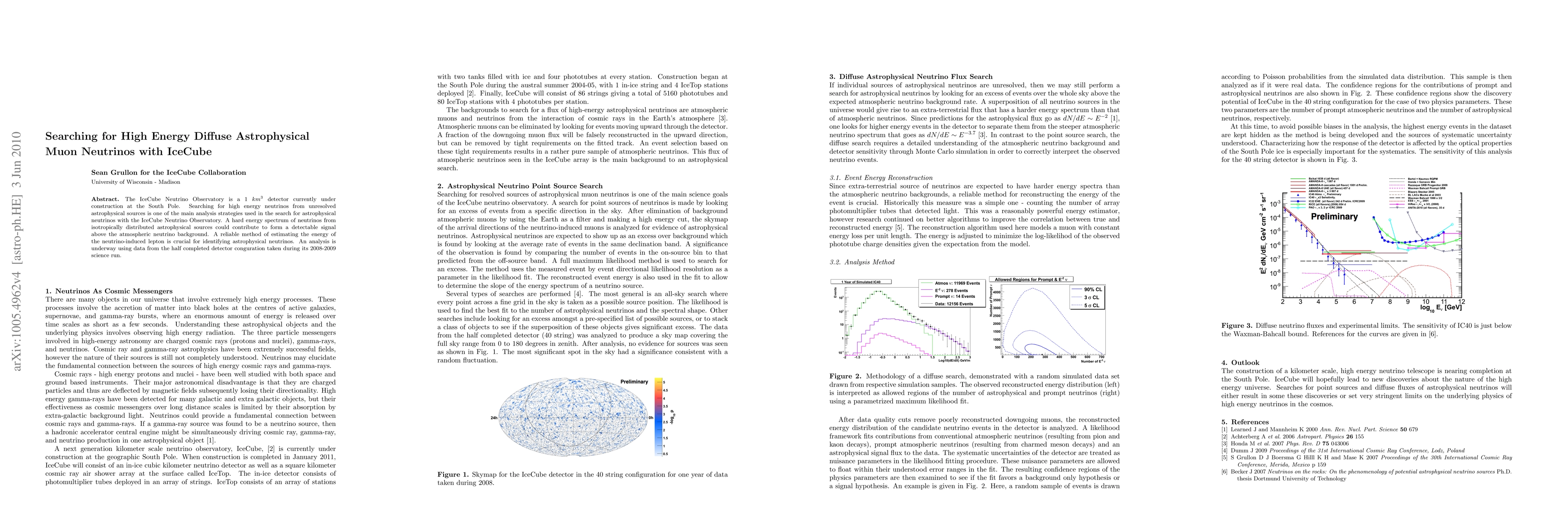 The IceCube Neutrino Observatory aims to detect high energy diffuse astrophysical muon neutrinos from unresolved sources using its 1 km³ detector at the South Pole. A method for estimating neutrino energy is crucial for identifying astrophysical neutrinos, with ongoing analysis using data from the partially completed detector's 2008-2009 run.