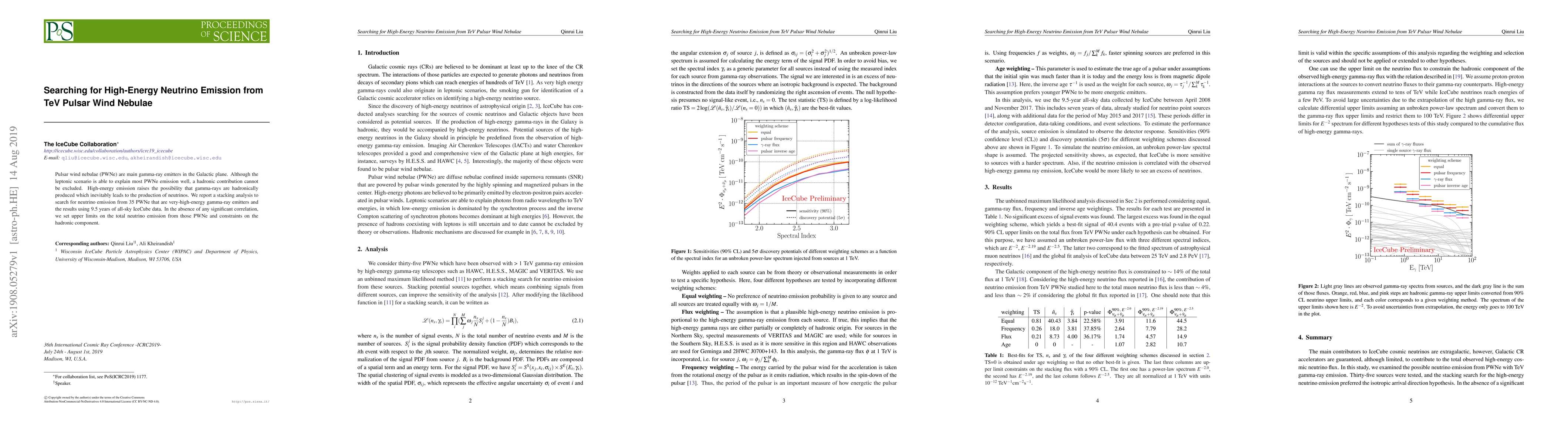 This paper reports a stacking analysis using 9.5 years of IceCube data to search for high-energy neutrino emission from 35 TeV pulsar wind nebulae, finding no significant correlation and setting upper limits on neutrino and hadronic emission from these sources.