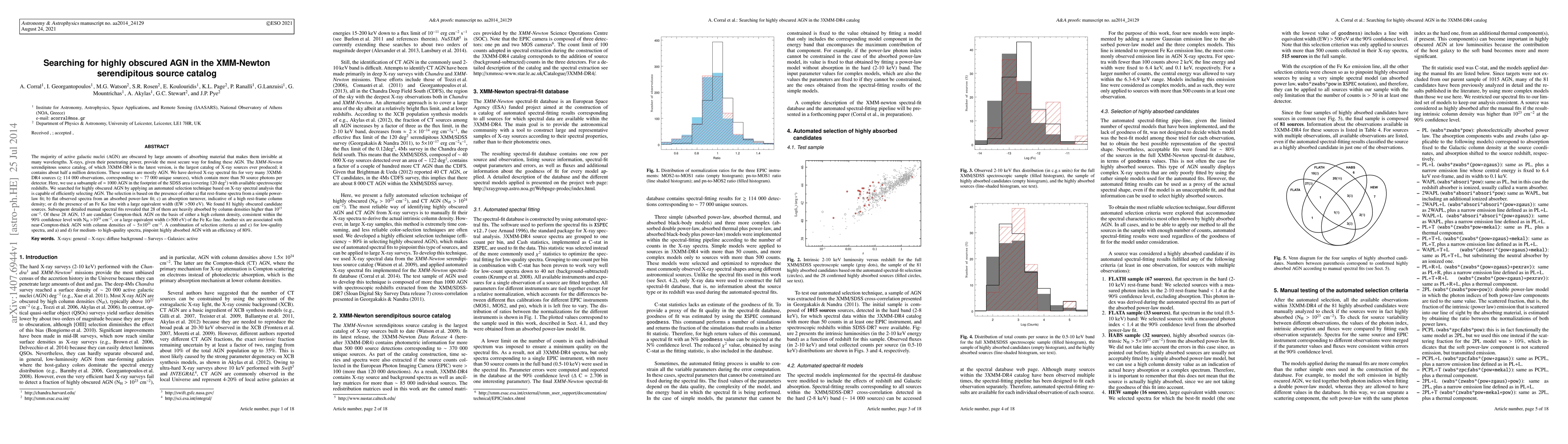 This study utilizes XMM-Newton data to identify highly obscured active galactic nuclei (AGN) within the XMM-Newton serendipitous source catalog, focusing on a subsample with spectroscopic redshifts. The research employs an automated selection technique based on X-ray spectral analysis to find AGN with significant absorption, identifying 81 candidates, of which 28 are confirmed to have column densities greater than 10$^{23}$ cm$^{-2}$, with 15 being Compton-thick AGN.