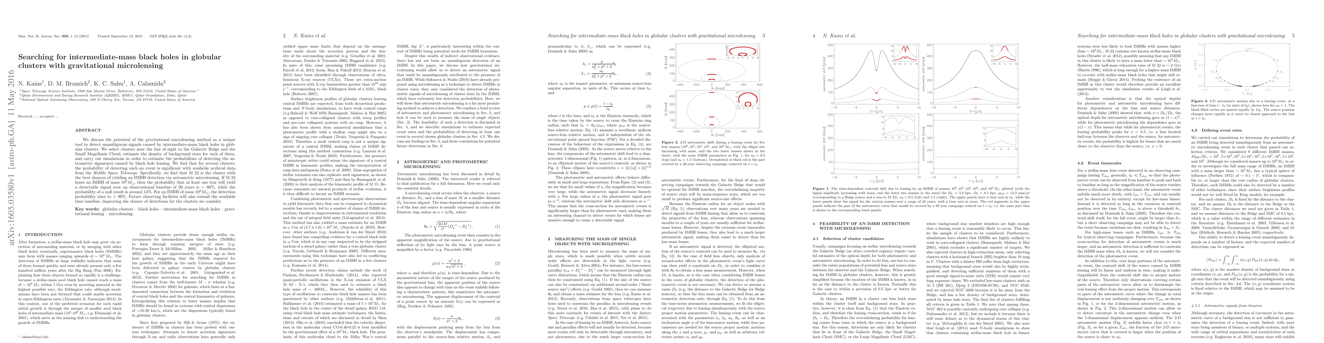 This paper explores the use of gravitational microlensing to detect intermediate-mass black holes (IMBH) in globular clusters, particularly focusing on clusters near the Galactic Bulge and Small Magellanic Cloud. The study finds that M 22 has the highest probability of hosting an IMBH, with a 86% chance of detection over 20 years for a $10^5M_\odot$ IMBH and a >99% chance for a $10^6M_\odot$ IMBH.