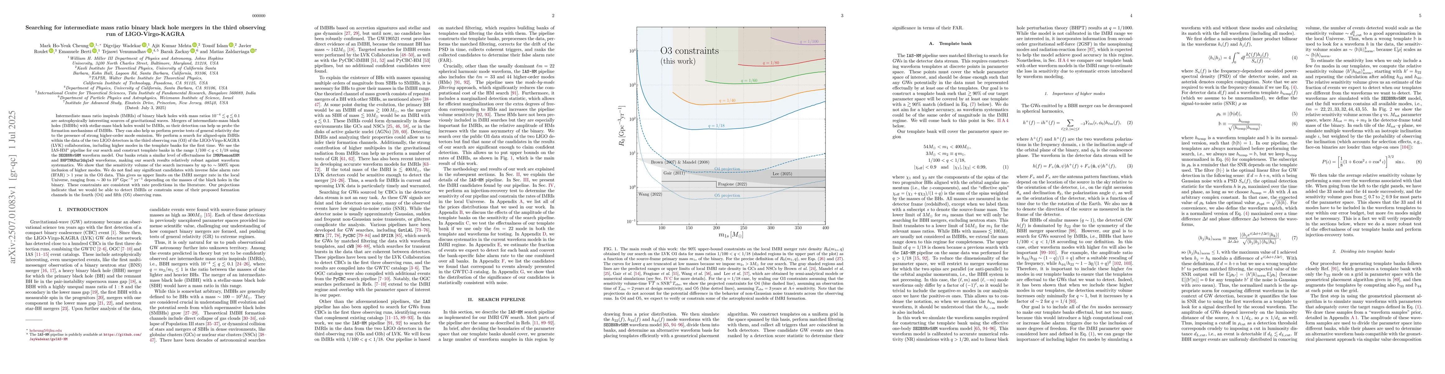 Intermediate mass ratio inspirals (IMRIs) of binary black holes with mass ratios $10^{-4}\lesssim q \lesssim 0.1$ are astrophysically interesting sources of gravitational waves. Mergers of intermediate-mass black holes (IMBHs) with stellar-mass black holes would be IMRIs, so their detection can help us probe the formation mechanisms of IMBHs. They can also help us perform precise tests of general relativity due to the presence of strong higher-order mode emission. We perform a search for aligned-spin IMRIs within the data of the two LIGO detectors in the third observing run (O3) of the LIGO-Virgo-KAGRA (LVK) collaboration, including higher modes in the template banks for the first time. We use the IAS-HM pipeline for our search and construct template banks in the range $1/100 < q<1/18$ using the SEOBNRv5HM waveform model. Our banks retain a similar level of effectualness for IMRPhenomXHM and BHPTNRSur2dq1e3 waveforms, making our search results relatively robust against waveform systematics. We show that the sensitivity volume of the search increases by up to $\sim 500\%$ upon inclusion of higher modes. We do not find any significant candidates with inverse false alarm rate (IFAR) $> 1$ year in the O3 data. This gives us upper limits on the IMRI merger rate in the local Universe, ranging from $\sim 30$ to $10^3$ Gpc$^{-3}$ yr$^{-1}$ depending on the masses of the black holes in the binary. These constraints are consistent with rate predictions in the literature. Our projections indicate that we would be able to detect IMRIs or constrain some of their proposed formation channels in the fourth (O4) and fifth (O5) observing runs.