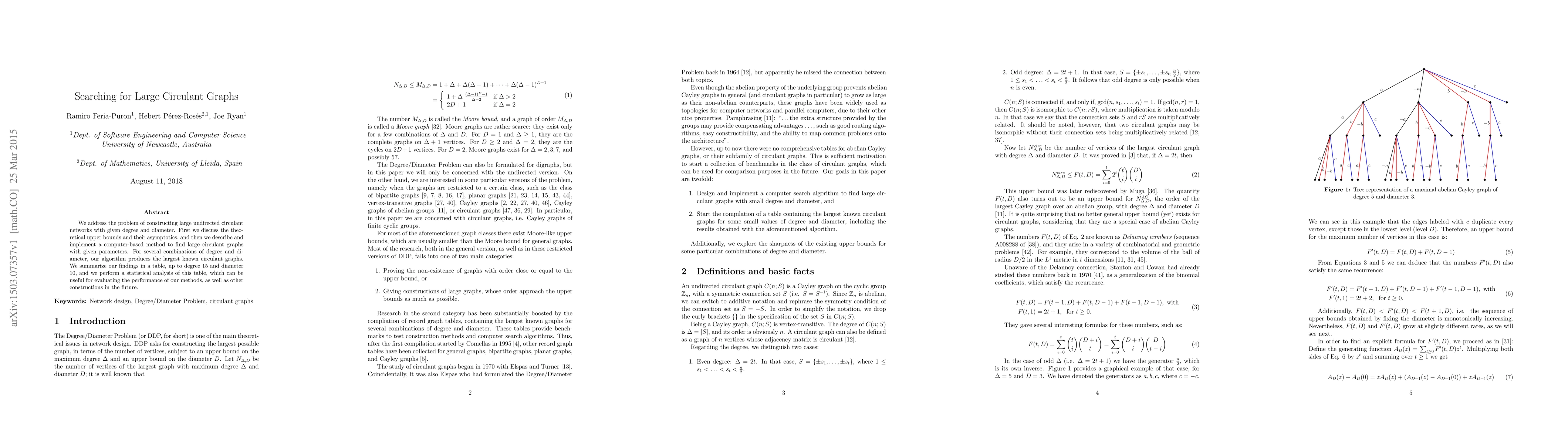 This paper explores the construction of large circulant graphs with specified degree and diameter, presenting theoretical upper bounds and implementing a computer-based method to find optimal graphs. The authors' algorithm produces the largest known circulant graphs for several degree and diameter combinations, summarized in a table up to degree 15 and diameter 10, with statistical analysis aiding future performance evaluations.