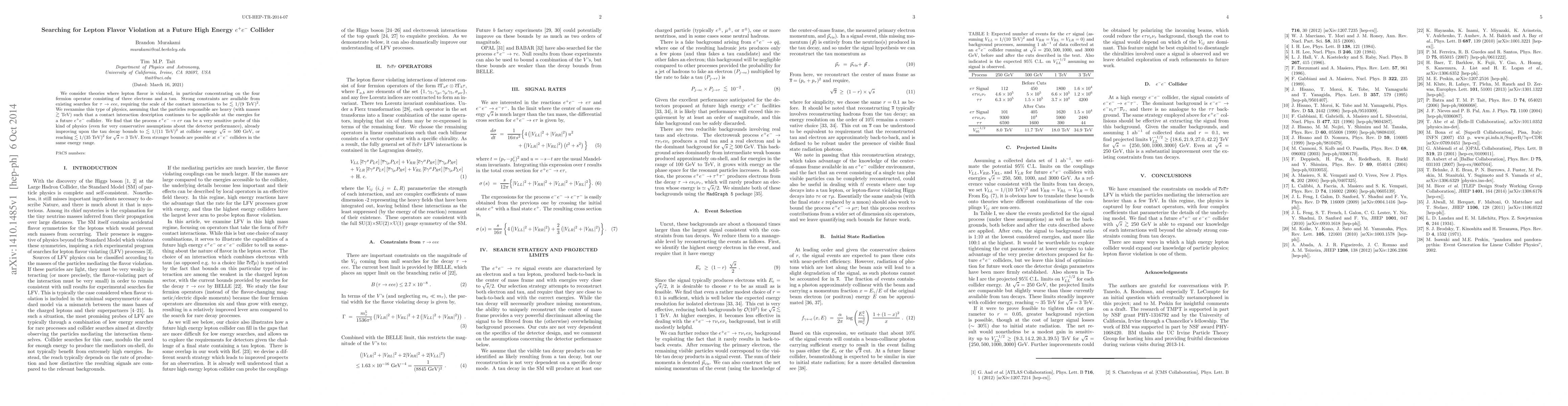 This paper explores lepton flavor violation in theories featuring a four-fermion operator involving three electrons and a tau lepton, finding that a future high-energy e+e- collider could significantly improve constraints on such interactions, surpassing current bounds from tau decay studies. The proposed process e+e- -> e tau is identified as a highly sensitive probe for these interactions.