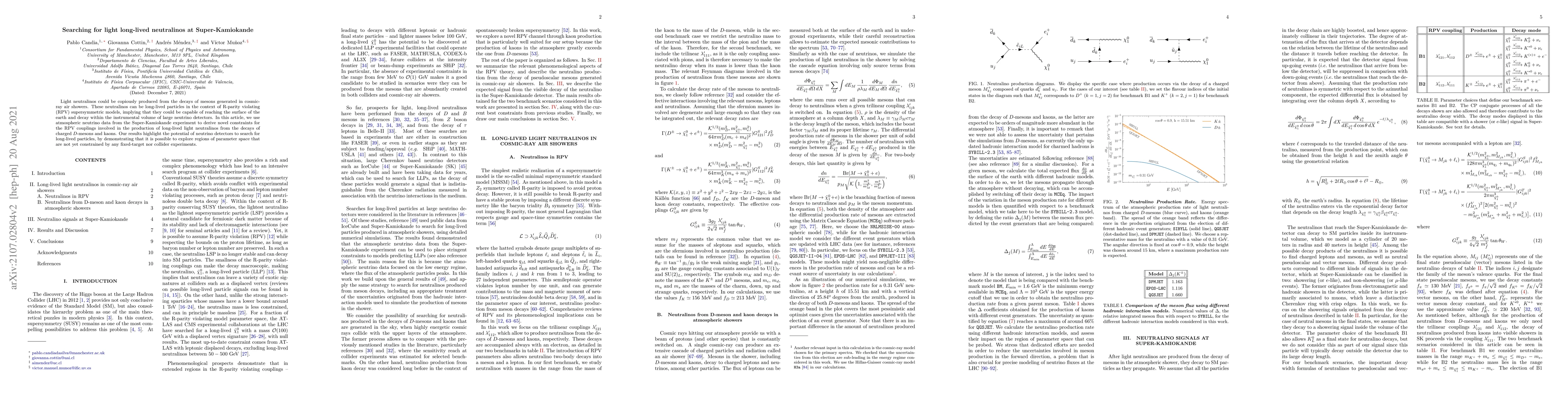 This paper uses Super-Kamiokande data to constrain models of long-lived light neutralinos produced from cosmic-ray air showers, highlighting the potential for neutrino detectors to search for new particles.