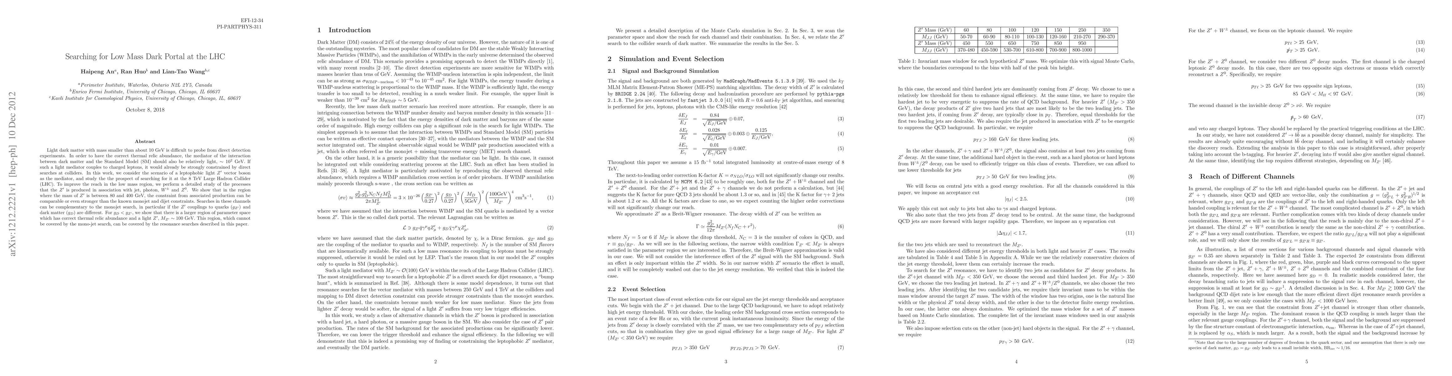 Light dark matter with mass smaller than about 10 GeV is difficult to probe from direct detection experiments. In order to have the correct thermal relic abundance, the mediator of the interaction between dark matter and the Standard Model (SM) should also be relatively light, $\sim 10^2$ GeV. If such a light mediator couples to charged leptons, it would already be strongly constrained by direct searches at colliders. In this work, we consider the scenario of a leptophobic light $Z'$ vector boson as the mediator, and study the the prospect of searching for it at the 8 TeV Large Hadron Collider (LHC). To improve the reach in the low mass region, we perform a detailed study of the processes that the $Z'$ is produced in association with jet, photon, $W^\pm$ and $Z^0$. We show that in the region where the mass of $Z'$ is between 80 and 400 GeV, the constraint from associated production can be comparable or even stronger than the known monojet and dijet constraints. Searches in these channels can be complementary to the monojet search, in particular if the $Z'$ couplings to quarks ($g_{Z'}$) and dark matter ($g_D$) are different. For $g_D < g_{Z'}$, we show that there is a larger region of parameter space which has correct thermal relic abundance and a light $Z'$, $M_{Z'} \sim 100 $ GeV. This region, which cannot be covered by the mono-jet search, can be covered by the resonance searches described in this paper.