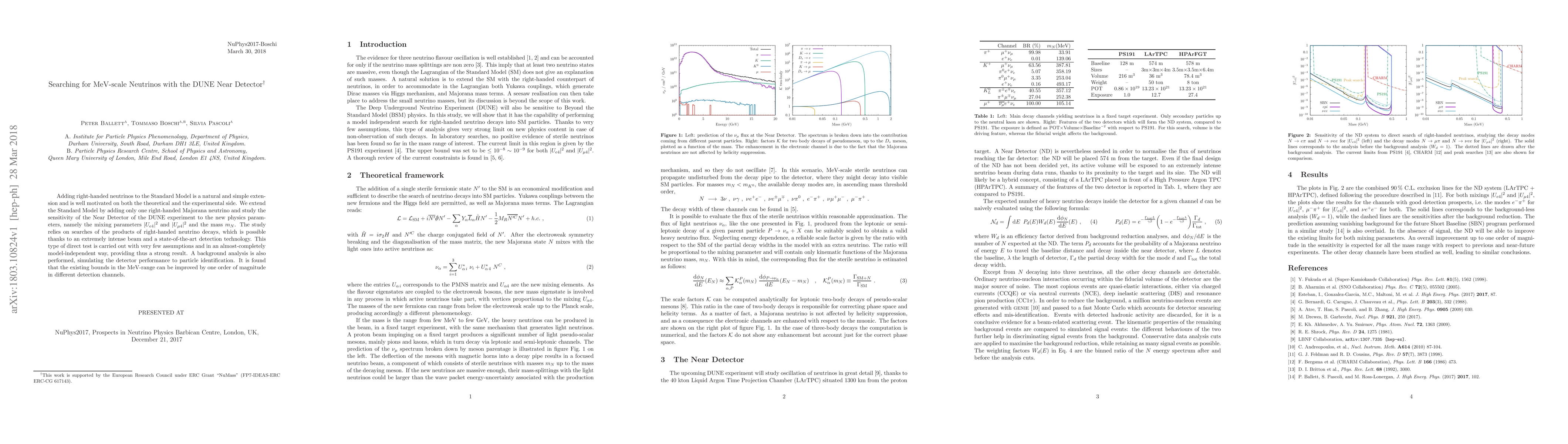 This paper investigates the potential of the DUNE Near Detector to detect MeV-scale right-handed neutrinos by examining decay products, improving existing bounds by an order of magnitude. The study employs advanced detection technology and minimal assumptions, achieving a model-independent test.