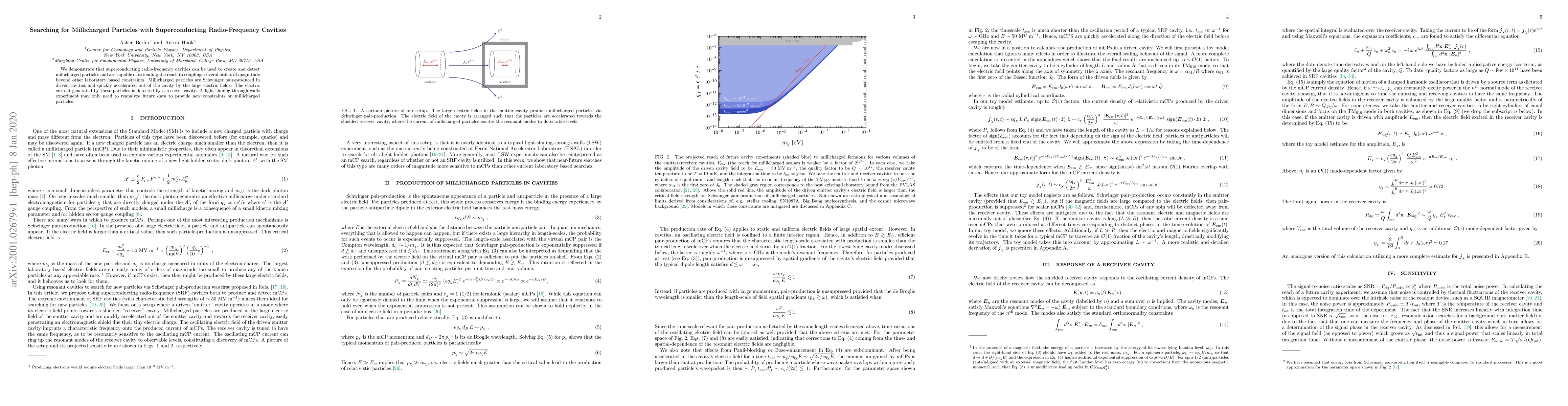 We demonstrate that superconducting radio-frequency cavities can be used to create and detect millicharged particles and are capable of extending the reach to couplings several orders of magnitude beyond other laboratory based constraints. Millicharged particles are Schwinger pair-produced in driven cavities and quickly accelerated out of the cavity by the large electric fields. The electric current generated by these particles is detected by a receiver cavity. A light-shining-through-walls experiment may only need to reanalyze future data to provide new constraints on millicharged particles.