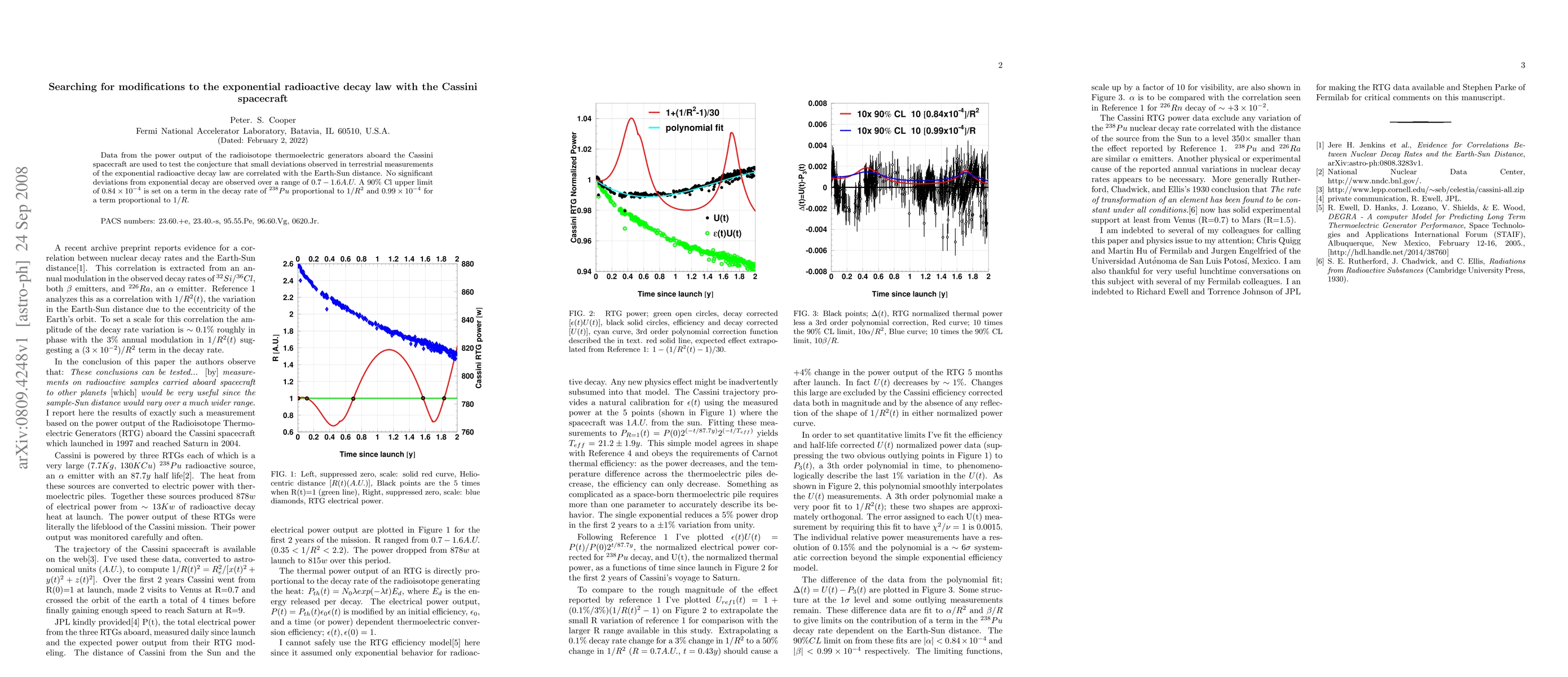 Data from the power output of the radioisotope thermoelectric generators aboard the Cassini spacecraft are used to test the conjecture that small deviations observed in terrestrial measurements of the exponential radioactive decay law are correlated with the Earth-Sun distance. No significant deviations from exponential decay are observed over a range of 0.7 - 1.6 A.U. A 90% Cl upper limit of 0.84 x 10^-4 is set on a term in the decay rate of Pu-238 proportional to 1/R^2 and 0.99 x 10^-4 for a term proportional to 1/R.