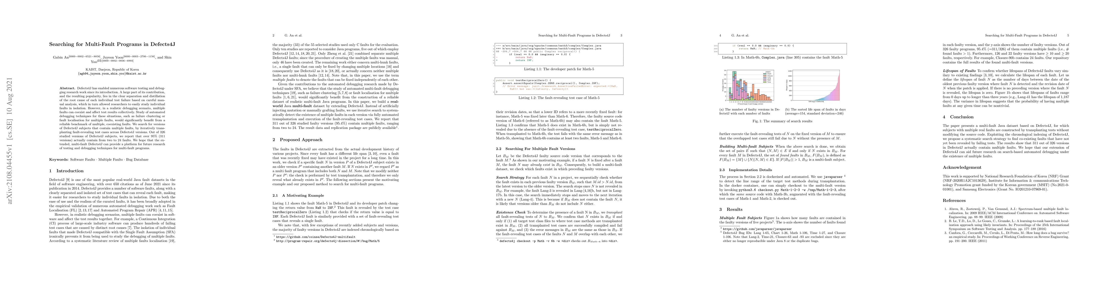 Defects4J has enabled numerous software testing and debugging research work since its introduction. A large part of its contribution, and the resulting popularity, lies in the clear separation and distillation of the root cause of each individual test failure based on careful manual analysis, which in turn allowed researchers to easily study individual faults in isolation. However, in a realistic debugging scenario, multiple faults can coexist and affect test results collectively. Study of automated debugging techniques for these situations, such as failure clustering or fault localisation for multiple faults, would significantly benefit from a reliable benchmark of multiple, coexisting faults. We search for versions of Defects4J subjects that contain multiple faults, by iteratively transplanting fault-revealing test cases across Defects4J versions. Out of 326 studied versions of Defects4J subjects, we report that over 95% (311 versions) actually contain from two to 24 faults. We hope that the extended, multi-fault Defects4J can provide a platform for future research of testing and debugging techniques for multi-fault programs.