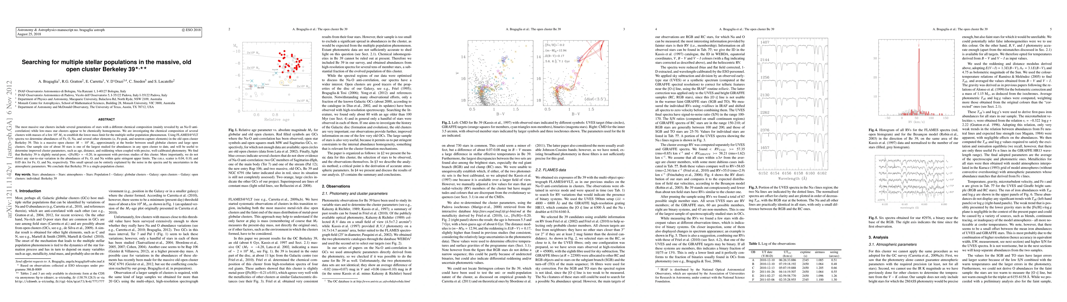 This study investigates the chemical composition of the massive open cluster Berkeley 39 using FLAMES@VLT spectra, finding no significant star-to-star variation in Fe, O, and Na abundances. The results suggest that Berkeley 39 is a single-population cluster, indicating a lack of multiple stellar generations.