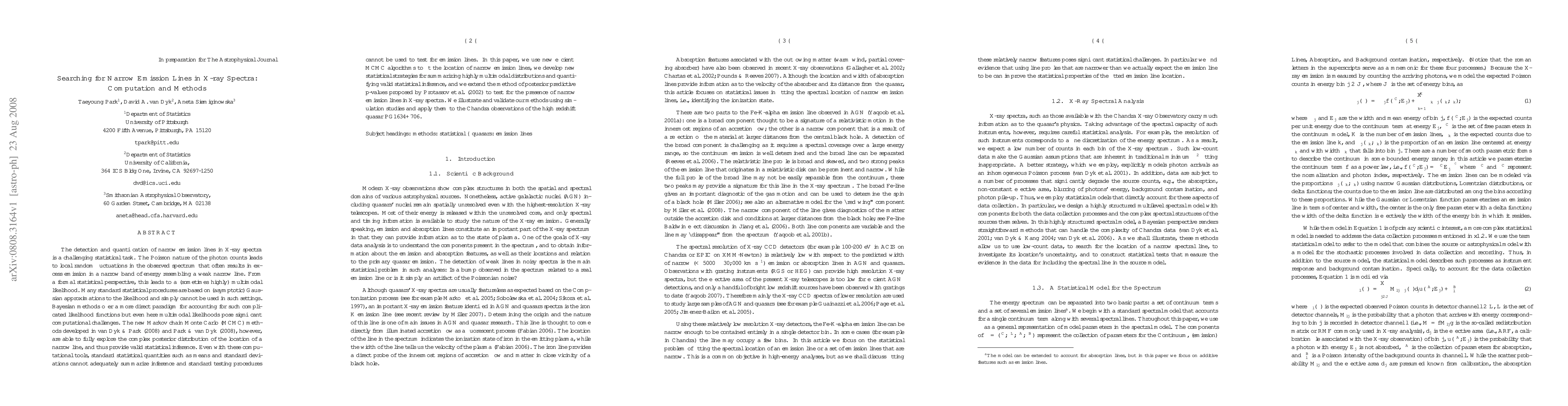 Researchers developed new methods to detect narrow emission lines in X-ray spectra using Markov chain Monte Carlo algorithms, providing a more accurate way to quantify the presence of these features in complex data sets.