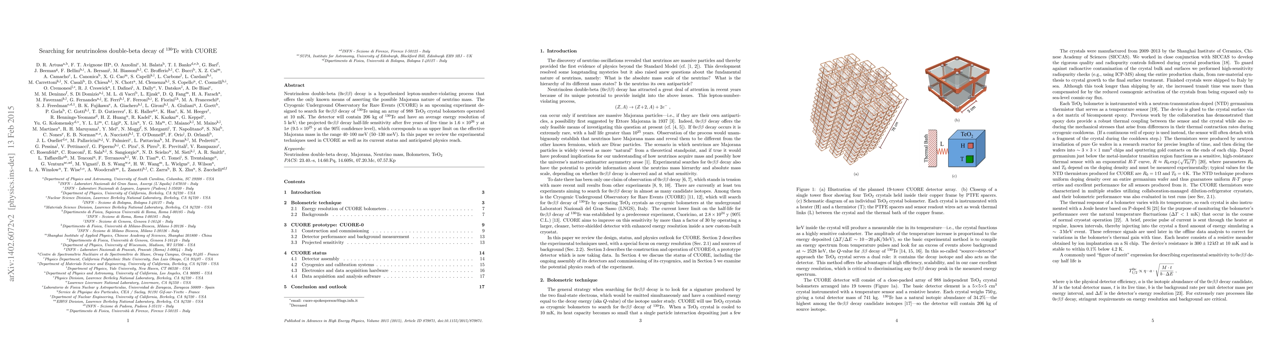 The CUORE experiment aims to detect neutrinoless double-beta decay of 130Te with high sensitivity, potentially revealing the Majorana nature of neutrinos, and reports on its experimental techniques and current status.