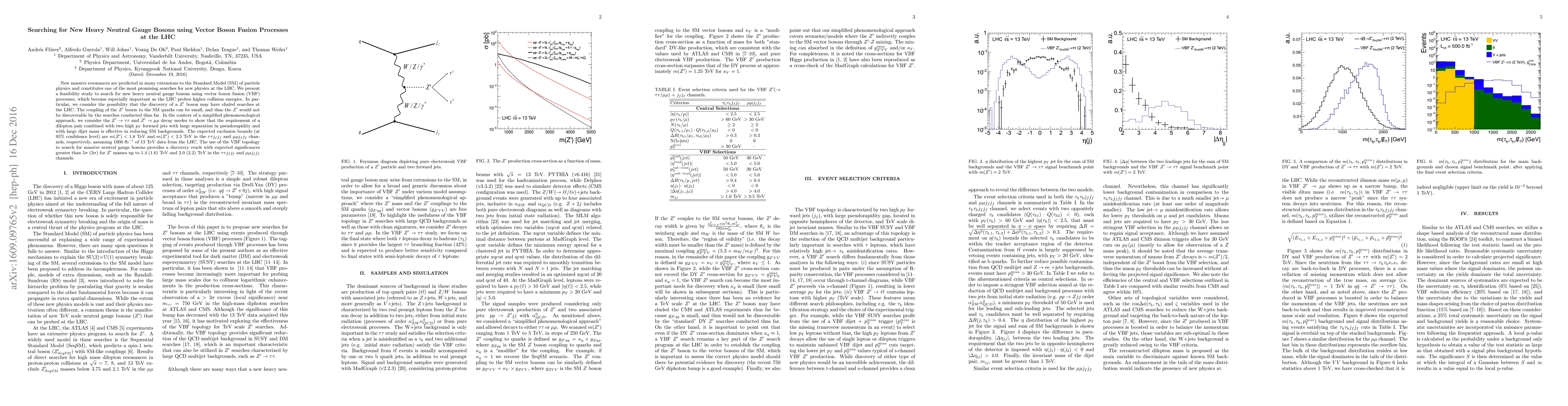 New massive resonances are predicted in many extensions to the Standard Model (SM) of particle physics and constitutes one of the most promising searches for new physics at the LHC. We present a feasibility study to search for new heavy neutral gauge bosons using vector boson fusion (VBF) processes, which become especially important as the LHC probes higher collision energies. In particular, we consider the possibility that the discovery of a $Z'$ boson may have eluded searches at the LHC. The coupling of the $Z'$ boson to the SM quarks can be small, and thus the $Z'$ would not be discoverable by the searches conducted thus far. In the context of a simplified phenomenological approach, we consider the $Z'\to\tau\tau$ and $Z'\to\mu\mu$ decay modes to show that the requirement of a dilepton pair combined with two high $p_{T}$ forward jets with large separation in pseudorapidity and with large dijet mass is effective in reducing SM backgrounds. The expected exclusion bounds (at 95\% confidence level) are $m(Z') < 1.8$ TeV and $m(Z') < 2.5$ TeV in the $\tau\tau j_{f}j_{f}$ and $\mu\mu j_{f}j_{f}$ channels, respectively, assuming 1000 fb$^{-1}$ of 13 TeV data from the LHC. The use of the VBF topology to search for massive neutral gauge bosons provides a discovery reach with expected significances greater than 5$\sigma$ (3$\sigma$) for $Z'$ masses up to 1.4 (1.6) TeV and 2.0 (2.2) TeV in the $\tau\tau j_{f}j_{f}$ and $\mu\mu j_{f}j_{f}$ channels.