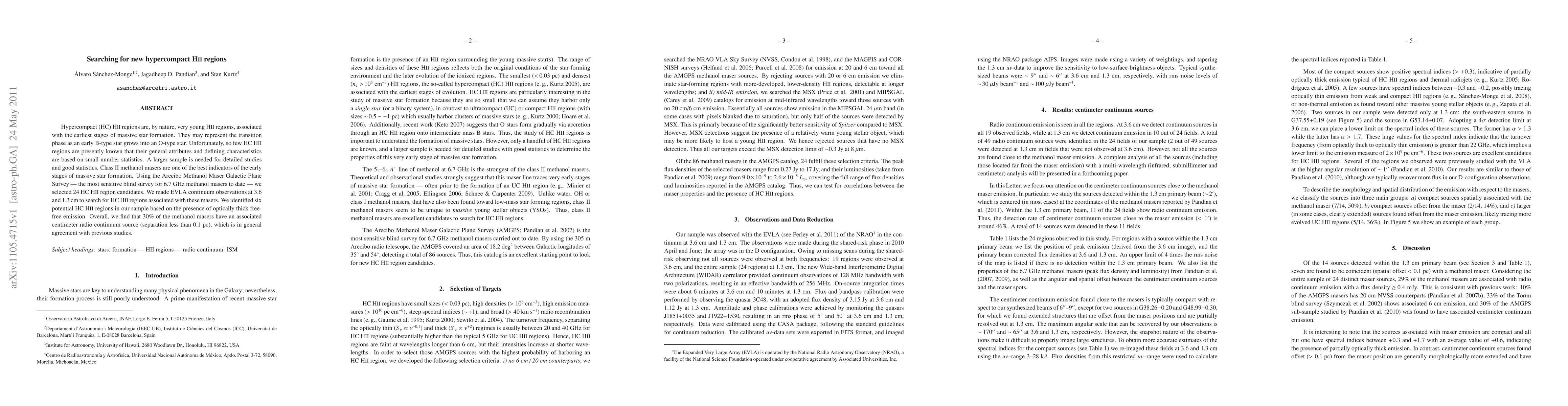 This research identifies six potential hypercompact HII regions using the Arecibo Methanol Maser Galactic Plane Survey and EVLA observations, aiming to better understand the early stages of massive star formation. The study finds that 30% of methanol masers correlate with centimeter radio continuum sources, supporting the need for a larger sample for detailed analysis.