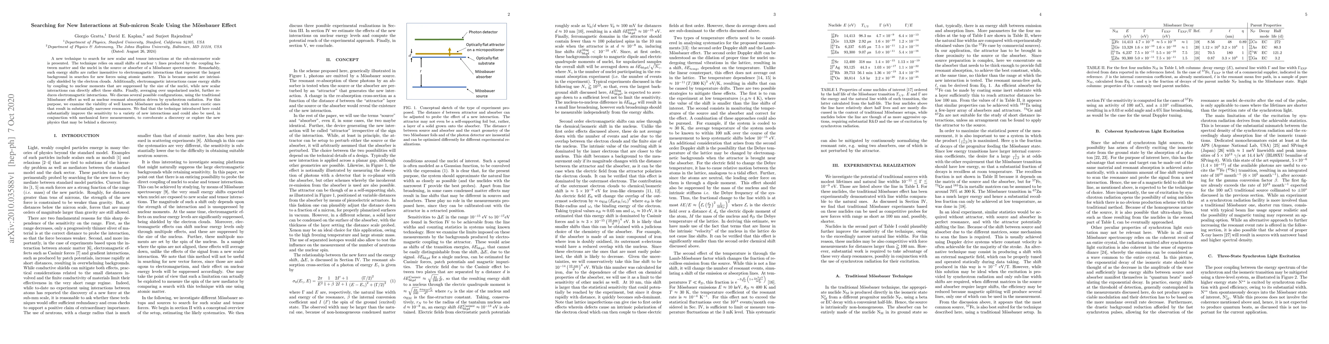 A new technique to search for new scalar and tensor interactions at the sub-micrometer scale is presented. The technique relies on small shifts of nuclear gamma lines produced by the coupling between matter and the nuclei in the source or absorber of a Mossbauer spectrometer. Remarkably, such energy shifts are rather insensitive to electromagnetic interactions that represent the largest background in searches for new forces using atomic matter. This is because nuclei are intrinsically shielded by the electron clouds. Additionally, electromagnetic interactions cause energy shifts by coupling to nuclear moments that are suppressed by the size of the nuclei, while new scalar interactions can directly affect these shifts. Finally, averaging over unpolarized nuclei, further reduces electromagnetic interactions. We discuss several possible configurations, using the traditional Mossbauer effect as well as nuclear resonant absorption driven by synchrotron radiation. For this purpose, we examine the viability of well known Mossbauer nuclides along with more exotic ones that result in substantially narrower resonances. We find that the technique introduced here could substantially improve the sensitivity to a variety of new interactions and could also be used, in conjunction with mechanical force measurements, to corroborate a discovery or explore the new physics that may be behind a discovery.