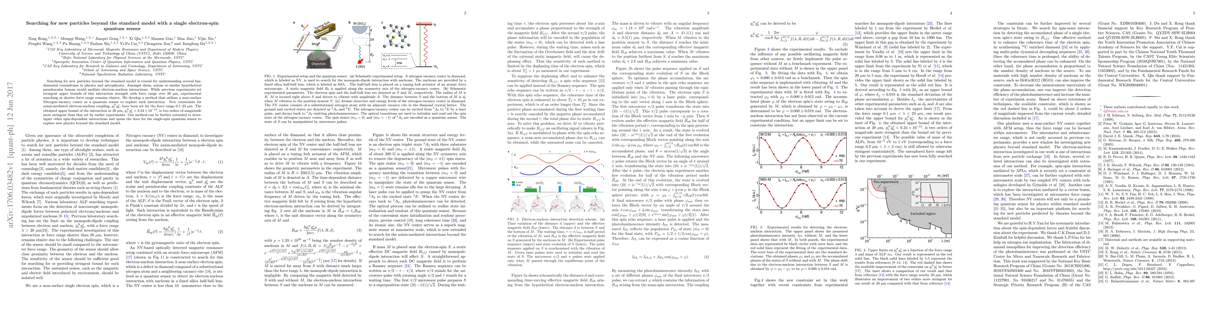 This paper develops a novel method using a Nitrogen-vacancy center as a quantum sensor to search for new particles like axions, setting stringent new constraints on axion-mediated electron-nucleon interactions at shorter force ranges, significantly improving previous limits. The technique holds promise for exploring other spin-dependent interactions and new physics beyond the standard model.