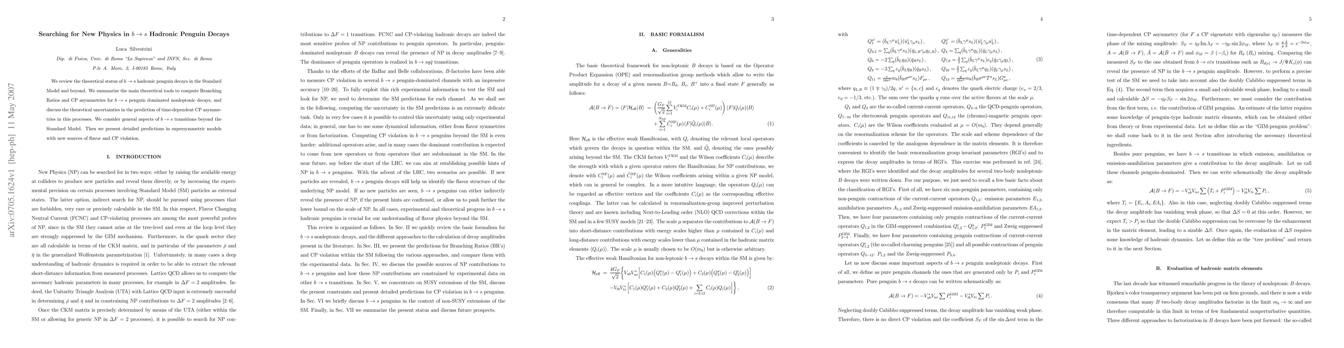 This paper reviews the theoretical framework for b to s hadronic penguin decays within and beyond the Standard Model, emphasizing tools for computing branching ratios and CP asymmetries, and discusses theoretical uncertainties and predictions for supersymmetric models with new flavor and CP violation sources.