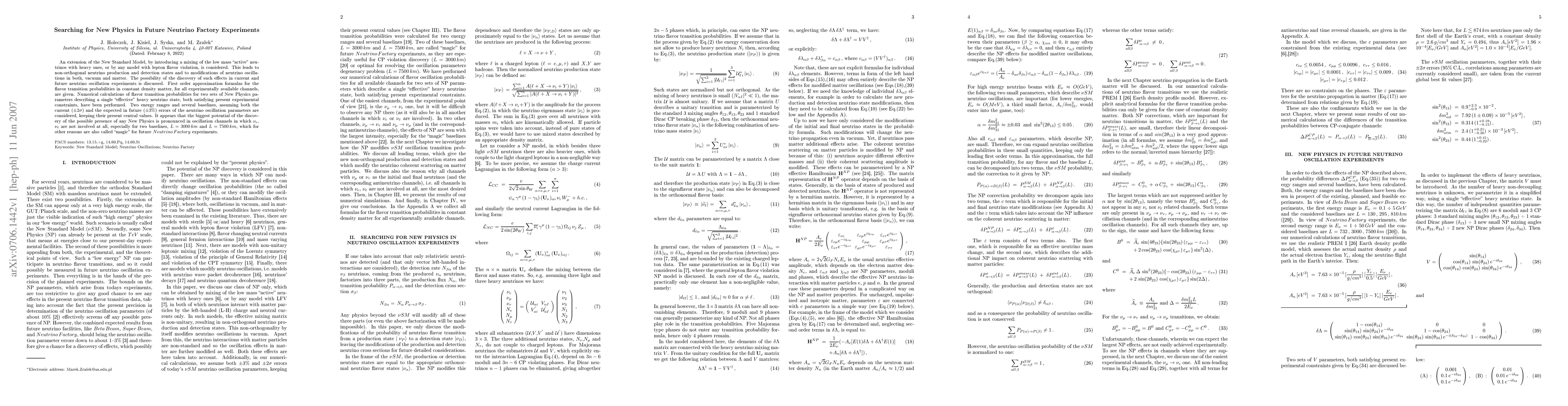 This paper explores the potential of future neutrino oscillation experiments, specifically Neutrino Factory setups, to detect new physics beyond the Standard Model through non-orthogonal neutrino states and modified oscillation behaviors. The study finds that the greatest sensitivity to new physics lies in channels not involving electron neutrinos, particularly for baselines of 3000 km and 7500 km.