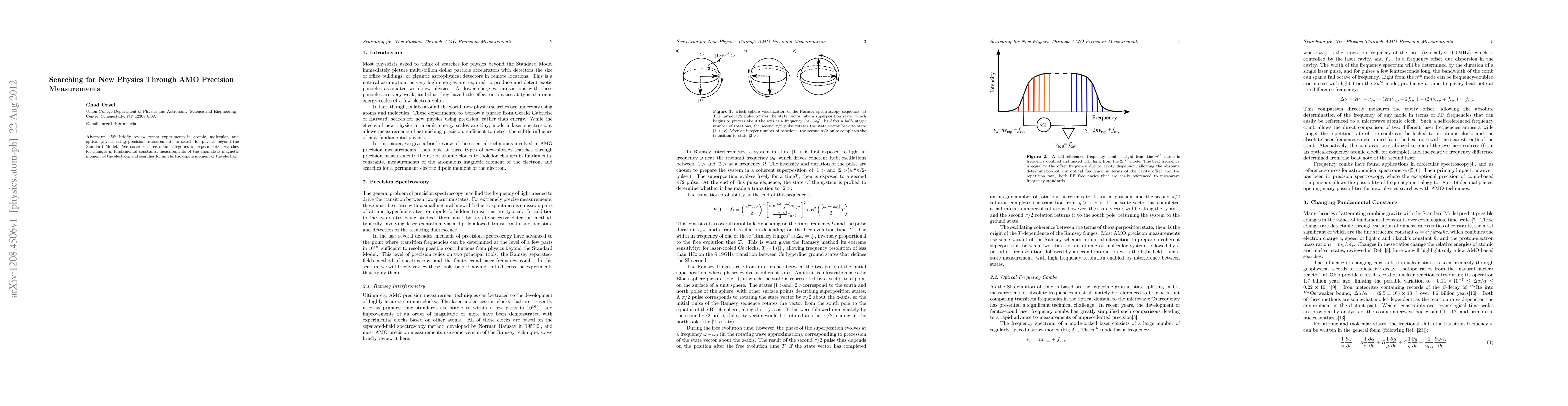 This paper reviews recent experiments in atomic, molecular, and optical physics aimed at discovering physics beyond the Standard Model, focusing on changes in fundamental constants, the electron's anomalous magnetic moment, and electric dipole moment searches.