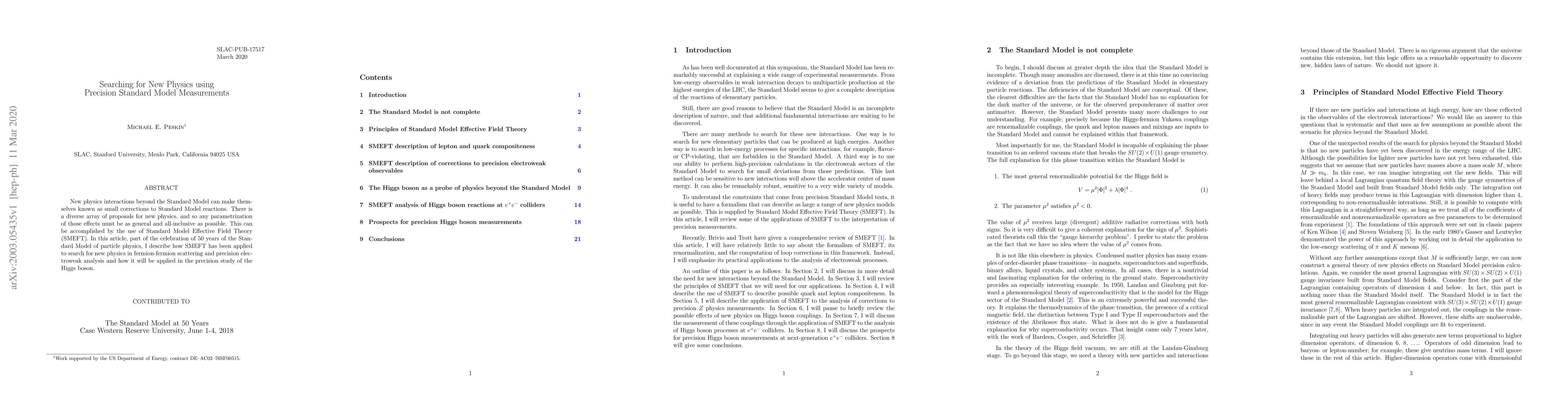 New physics interactions beyond the Standard Model can make themselves known as small corrections to Standard Model reactions. There is a diverse array of proposals for new physics, and so any parametrization of those effects must be as general and all-inclusive as possible. This can be accomplished by the use of Standard Model Effective Field Theory (SMEFT). In this article, part of the celebration of 50 years of the Standard Model of particle physics, I describe how SMEFT has been applied to search for new physics in fermion-fermion scattering and precision electroweak analysis and how it will be applied in the precision study of the Higgs boson. [to appear in the proceedings of the SM@50 Symposium, Case Western Reserve University, June 1-4, 2018]