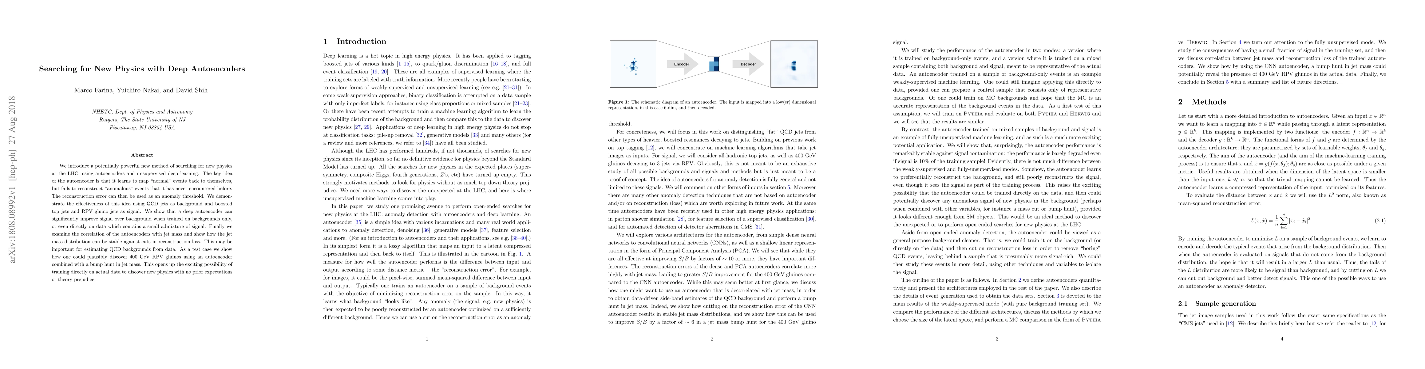 This paper proposes using deep autoencoders and unsupervised deep learning to search for new physics at the LHC, demonstrating that autoencoders can effectively distinguish anomalous events from normal ones by measuring reconstruction errors. The method shows promise in improving signal detection, even when trained on backgrounds or mixed data, and could potentially discover new particles like 400 GeV RPV gluinos without prior theoretical assumptions.