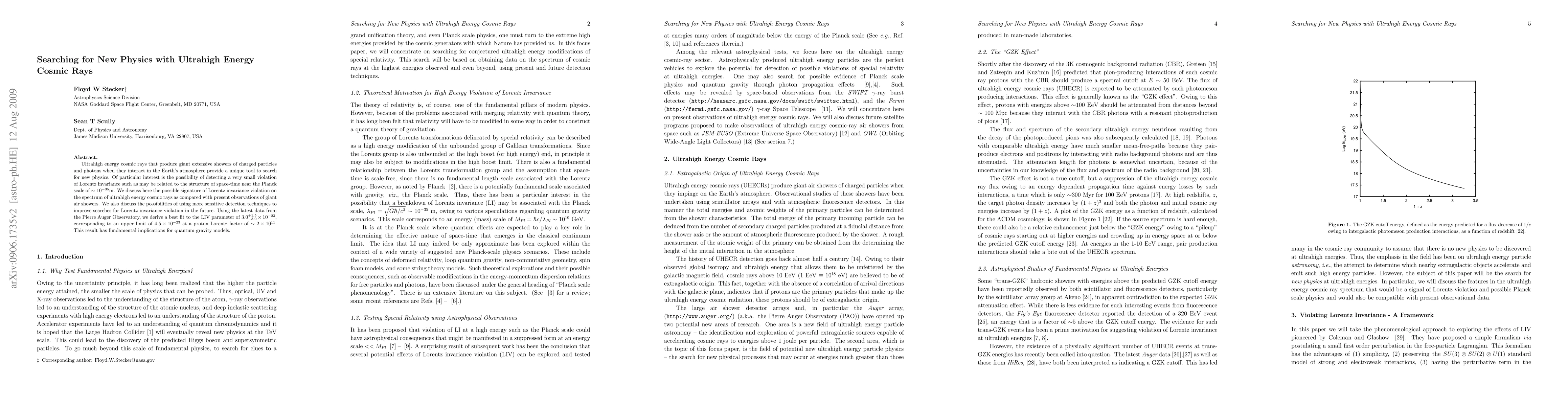 This paper explores the potential of ultrahigh energy cosmic rays to reveal new physics, specifically investigating Lorentz invariance violation linked to Planck scale spacetime structures. The study derives a best fit for the Lorentz invariance violation parameter, setting an upper limit that has significant implications for quantum gravity models.